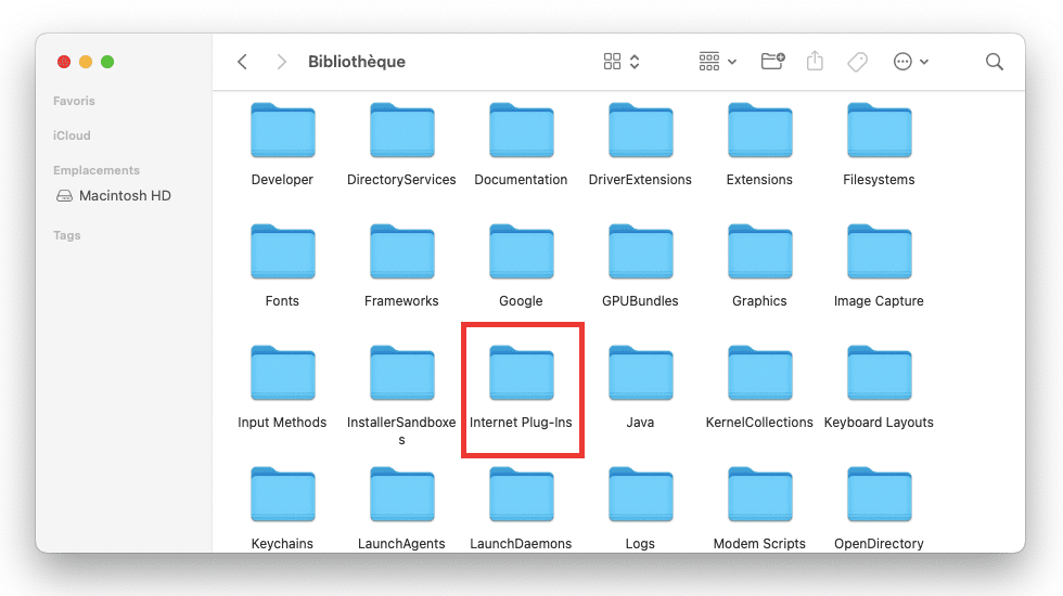 - Cliquez sur le dossier Internet Plug-ins folder situé dans Bibliothèque.