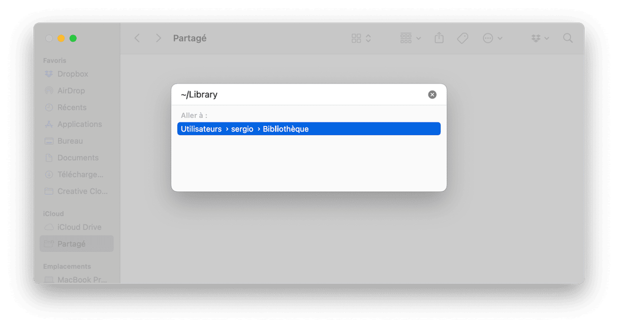- Cliquez sur le nom de votre Mac et choisissez le dossier Bibliothèque, ou cliquez sur le menu Aller, Aller au dossier, puis tapez "/Bibliothèque" (attention, sans "~" cette fois).