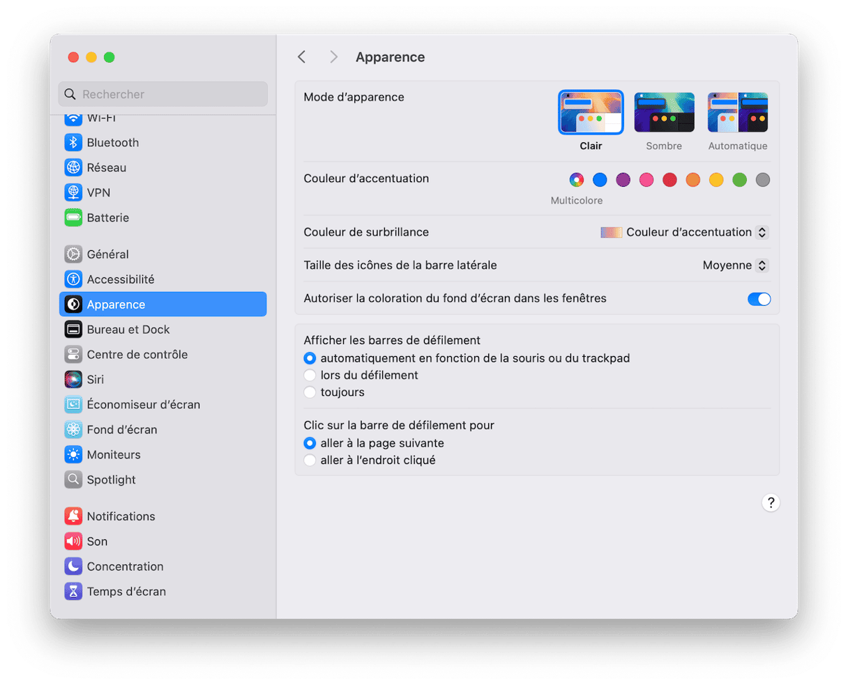 - Rendez-vous dans Réglages Système > Apparence.