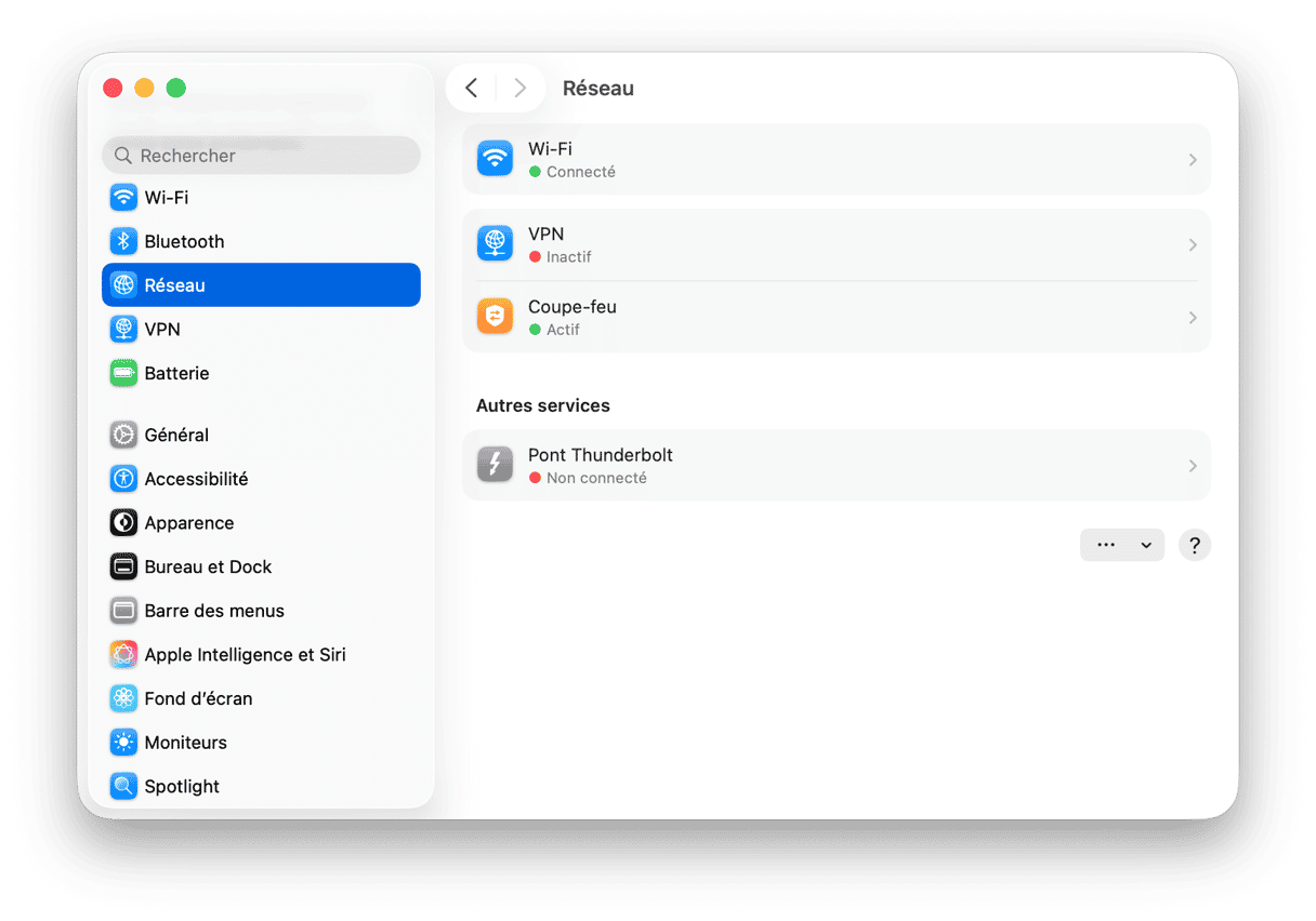 - Les paramètres du coupe-feu de votre Mac se trouvent dans Réglages Système > Réseau. Assurez-vous que le coupe-feu soit bien activé. Cliquez ensuite sur Options pour configurer l'accès des connexions entrantes. Si vous craignez que quelqu'un puisse accéder à votre Mac à distance, vous pouvez bloquer toutes les connexions entrantes. Pour les paramètres du coupe-feu de votre routeur, vous pouvez y accéder depuis sa page d'administration. L'adresse IP correspondante devrait être sur le manuel, ou sur un autocollant derrière ou sous le boitier. Vous devriez également voir un identifiant et un mot de passe par défaut. Après avoir accédé à votre compte, cherchez les paramètres du coupe-feu.