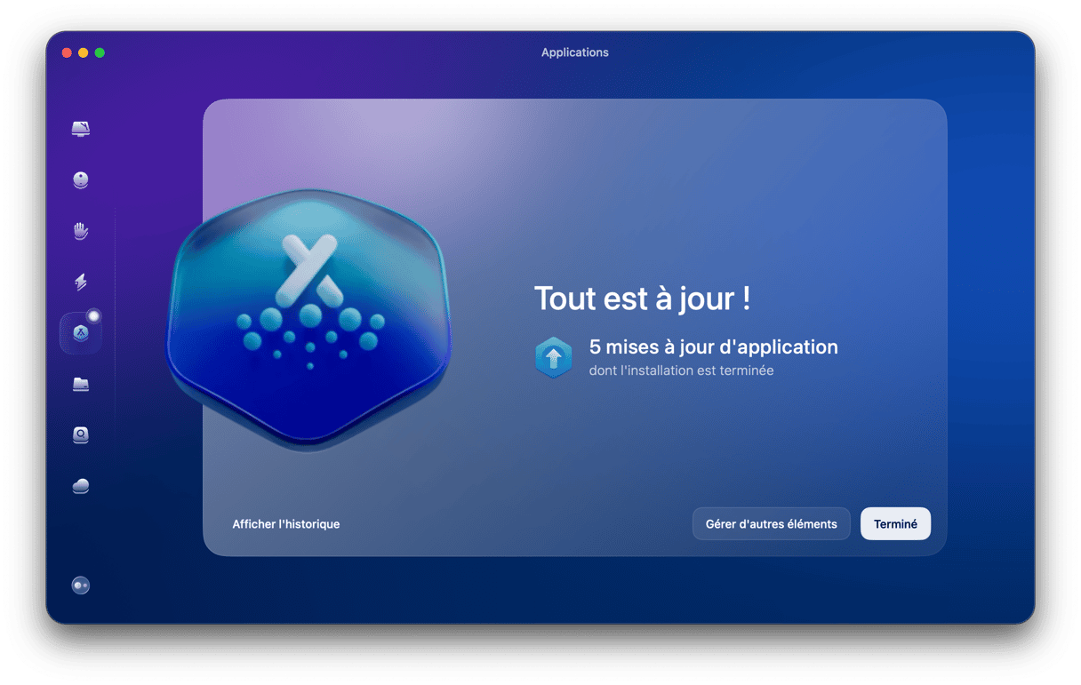 Comme vous le verrez dans les deux méthodes ci-dessous, désinstaller ScreenConnect manuellement ou via le Terminal nécessite plusieurs étapes, et pas mal de travail. Mais il y a plus simple. Utiliser un outil de désinstallation dédié vous permet de désinstaller n'importe quelle application en quelques clics. Nous vous conseillons la fonctionnalité Applications de CleanMyMac. Vous pouvez vous en servir pour désinstaller n'importe quelle application qui ne fait pas partie de macOS. Elle partira alors à la recherche de tous les fichiers associées à l'application en question, et vous permettra de les effacer en un clic.