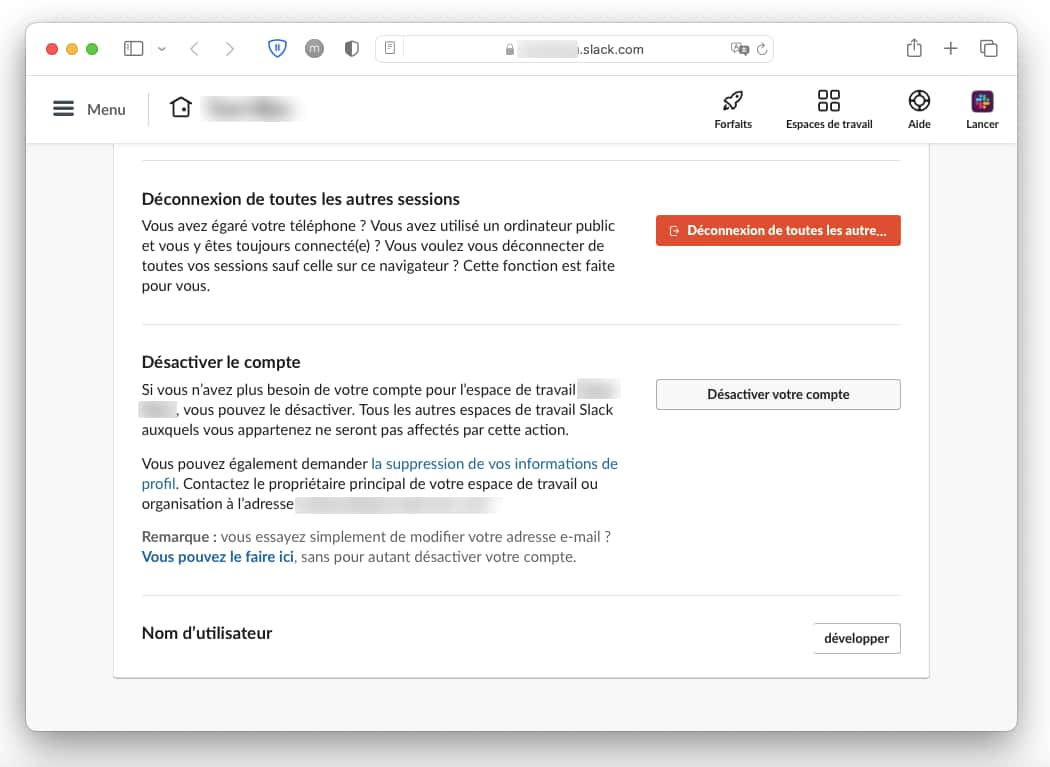 Si vous êtes le ou la propriétaire principal(e) de votre espace sur Slack et que vous ne souhaitez pas uniquement désinstaller l'application, mais également supprimer votre compte, commencez par transférer votre espace de travail à quelqu'un d'autre. Si vous ne possédez pas d'espace de travail, vous pouvez passer directement à la section expliquant comment supprimer votre compte.