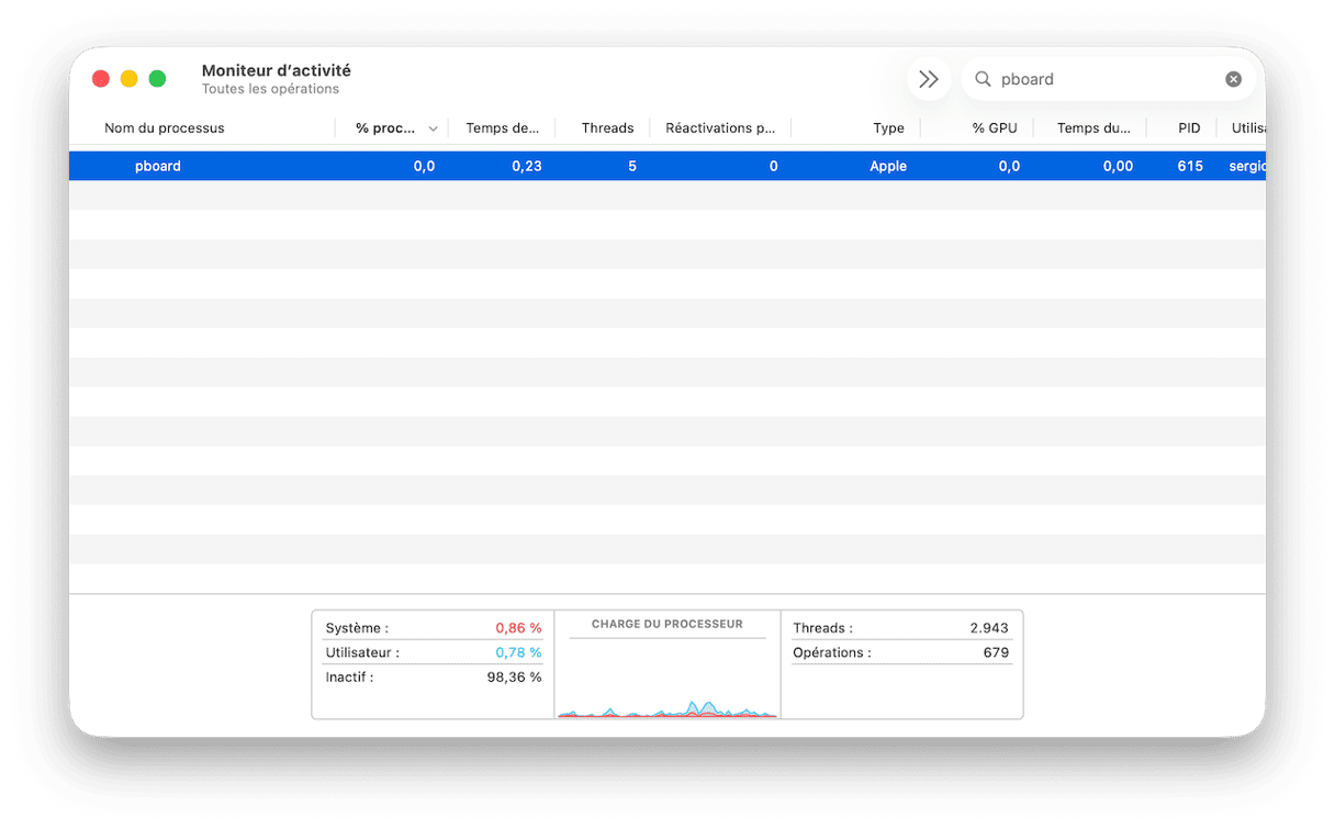 Si le copier-coller ne fonctionne pas sur Mac, le Moniteur d'activité pourrait vous aider :