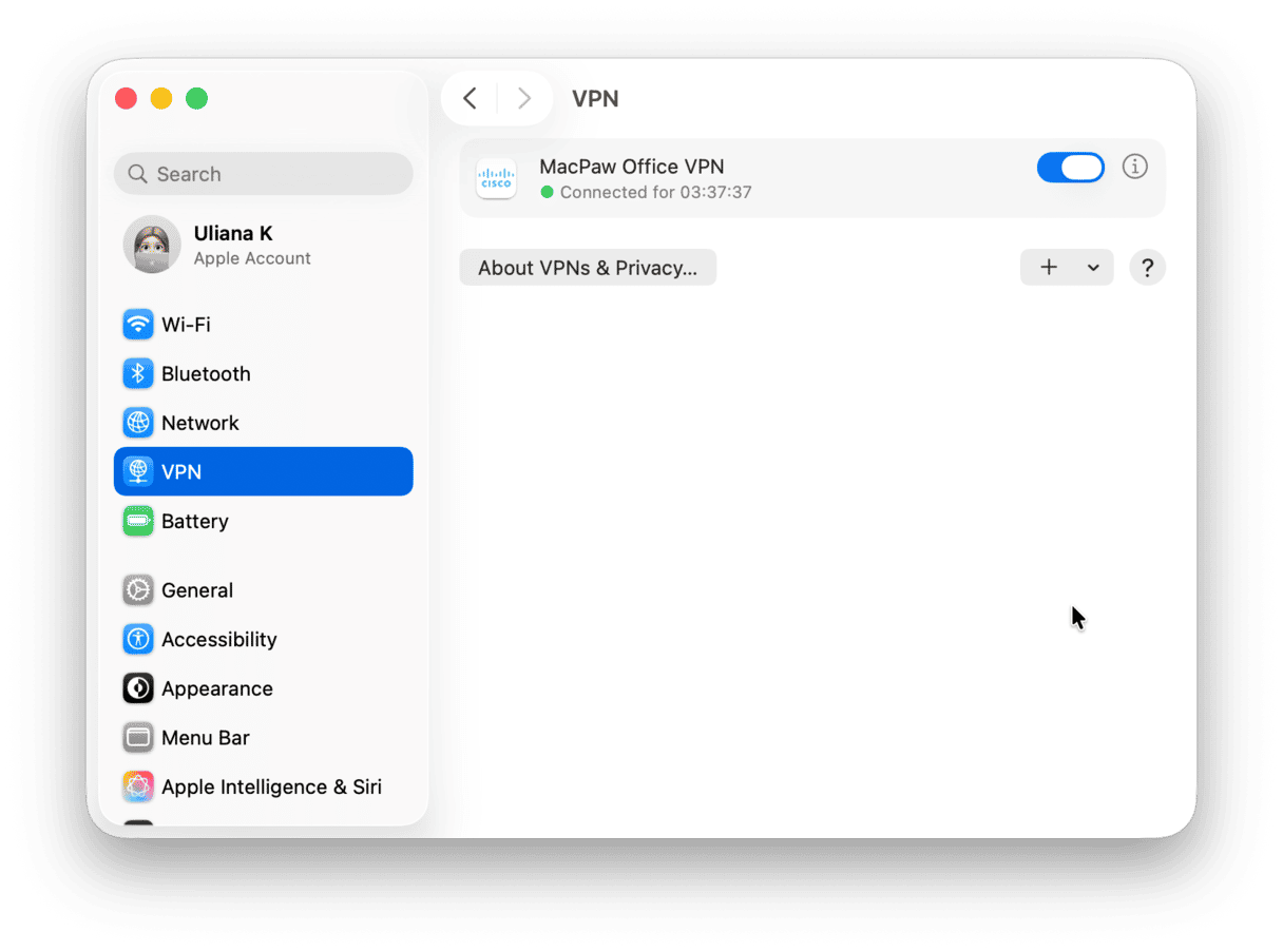 As for VPN, it might interfere with AirDrop, so it’s worth disabling it and trying to send or receive a file once again. Just go to System Settings/Settings> VPN & Filters and turn it off. You can enable it when you no longer need to use AirDrop.