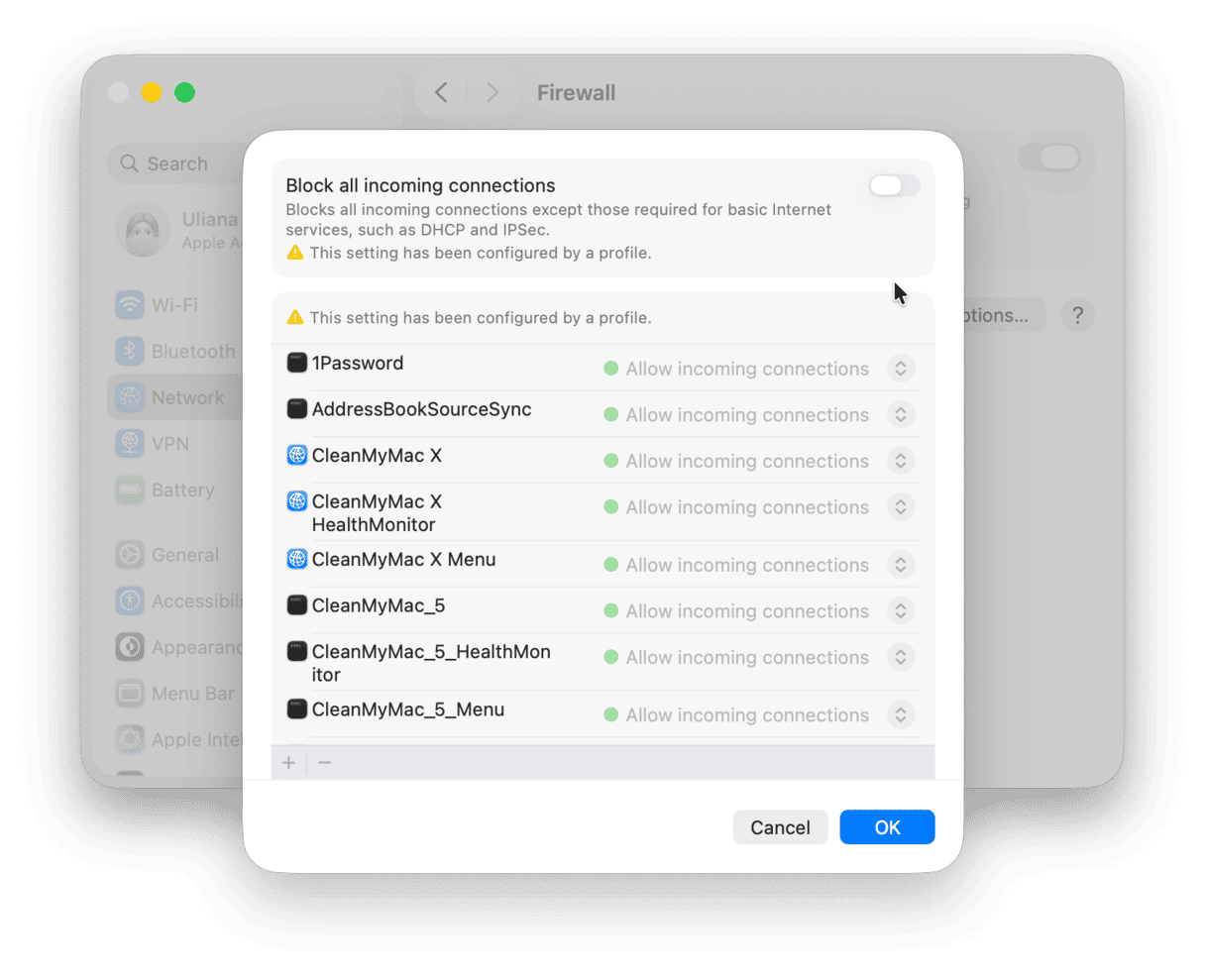 Your Mac’s built-in firewall is there to prevent unauthorized applications and services from accepting incoming connections. However, if you have it set to block all incoming connections, that could prevent AirDrop from working properly.