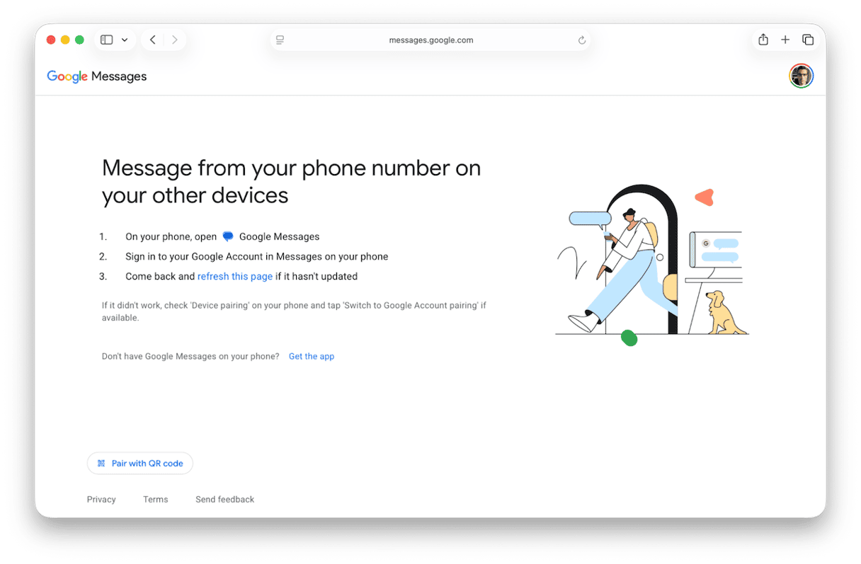 - Scan the code, and you will be signed into Google Messages on your Mac and be able to see your existing messages as well as send new ones.