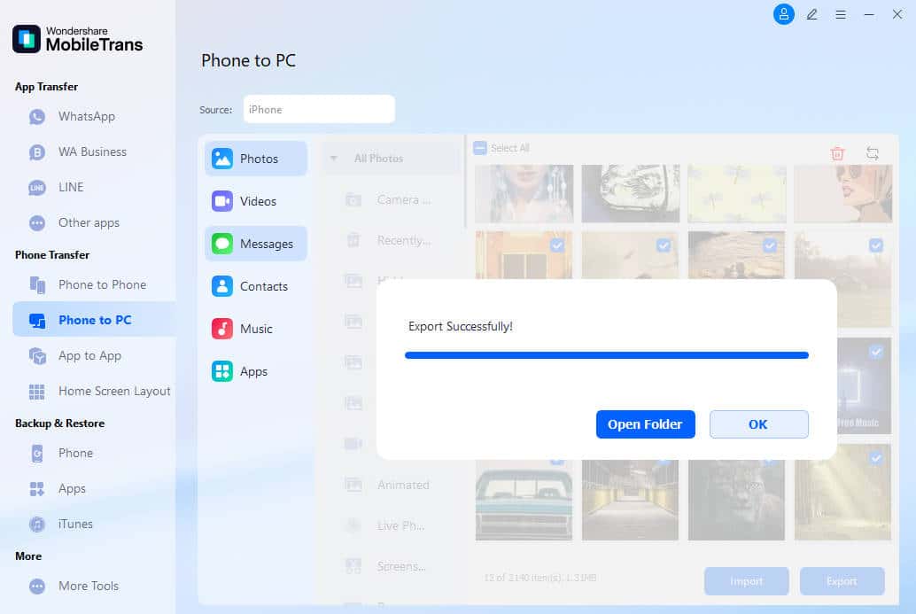 - Open MobileTrans on your Mac and choose Phone Transfer > Export to Computer.