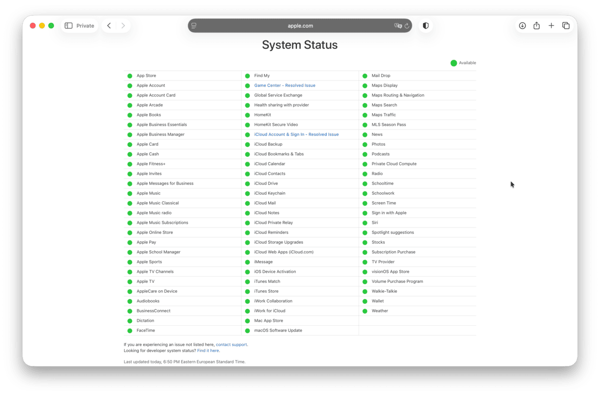 - See if the dot next to the App Store is green (available) or red (there’s a problem).