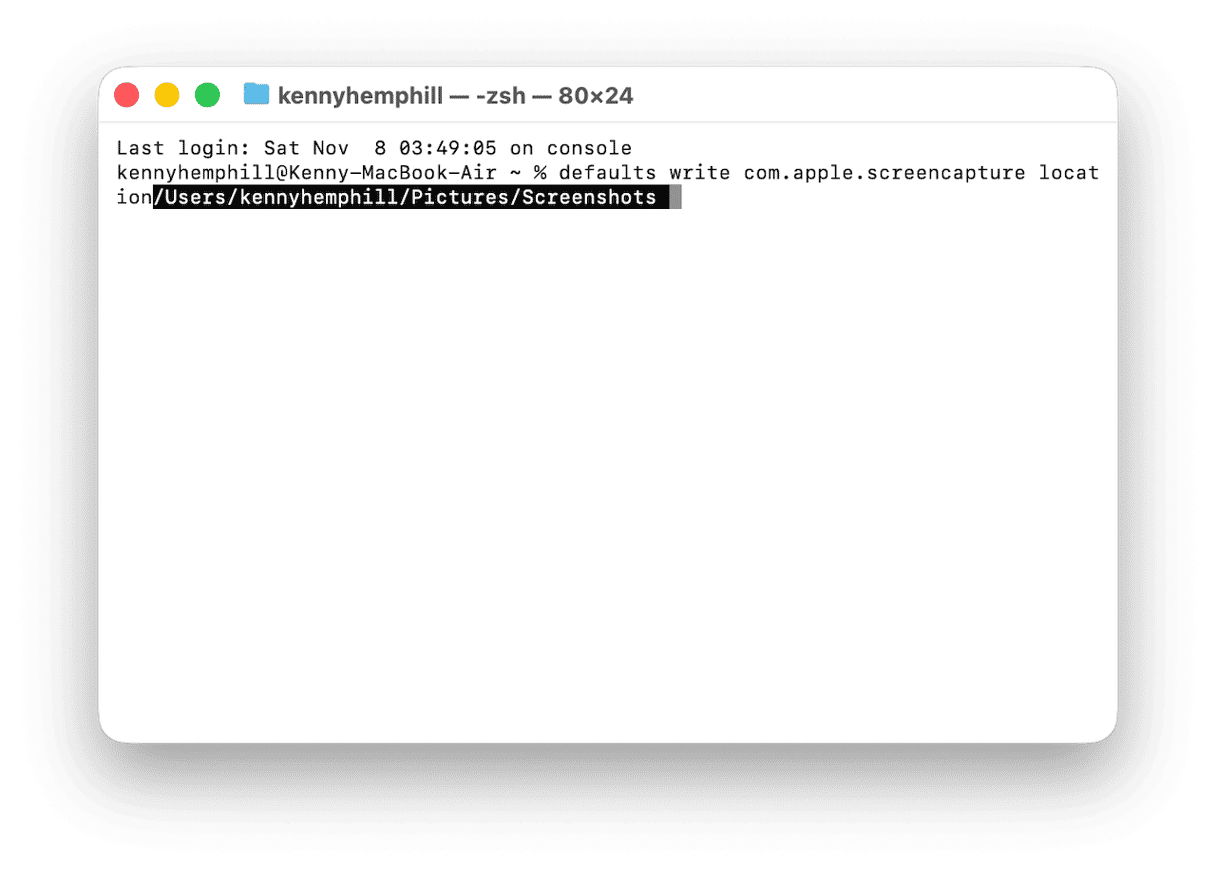 Screenshots will now be saved to the new folder by default. Remember not to delete that folder. If you want to revert to saving to the Desktop by default, repeat the steps above. At step 4, navigate to your user folder in a Finder window and drag the Desktop folder from there onto the Terminal window.