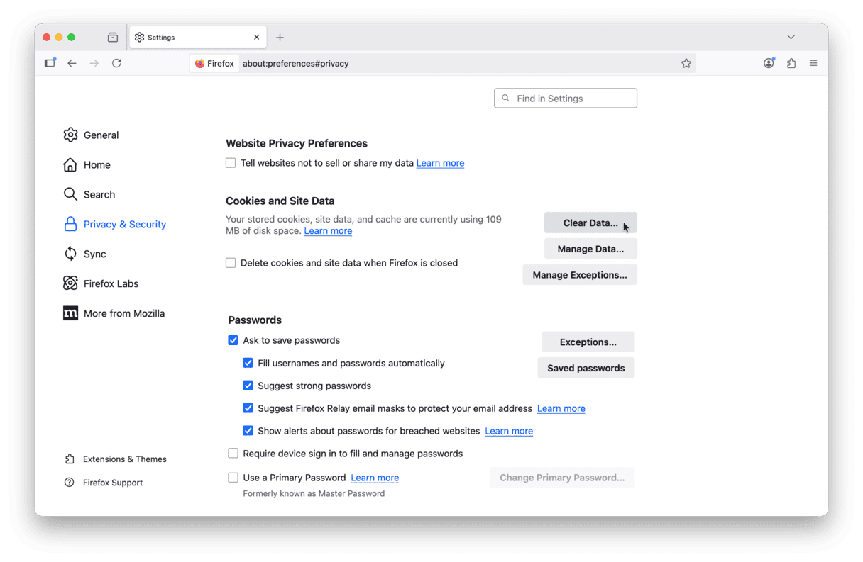 - Clearing cache does not delete autosaved passwords or other autofill data.