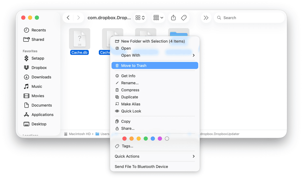 - Clear up these folders like we did with user cache: press Command-A to highlight all files, then right-click them and move to Trash.