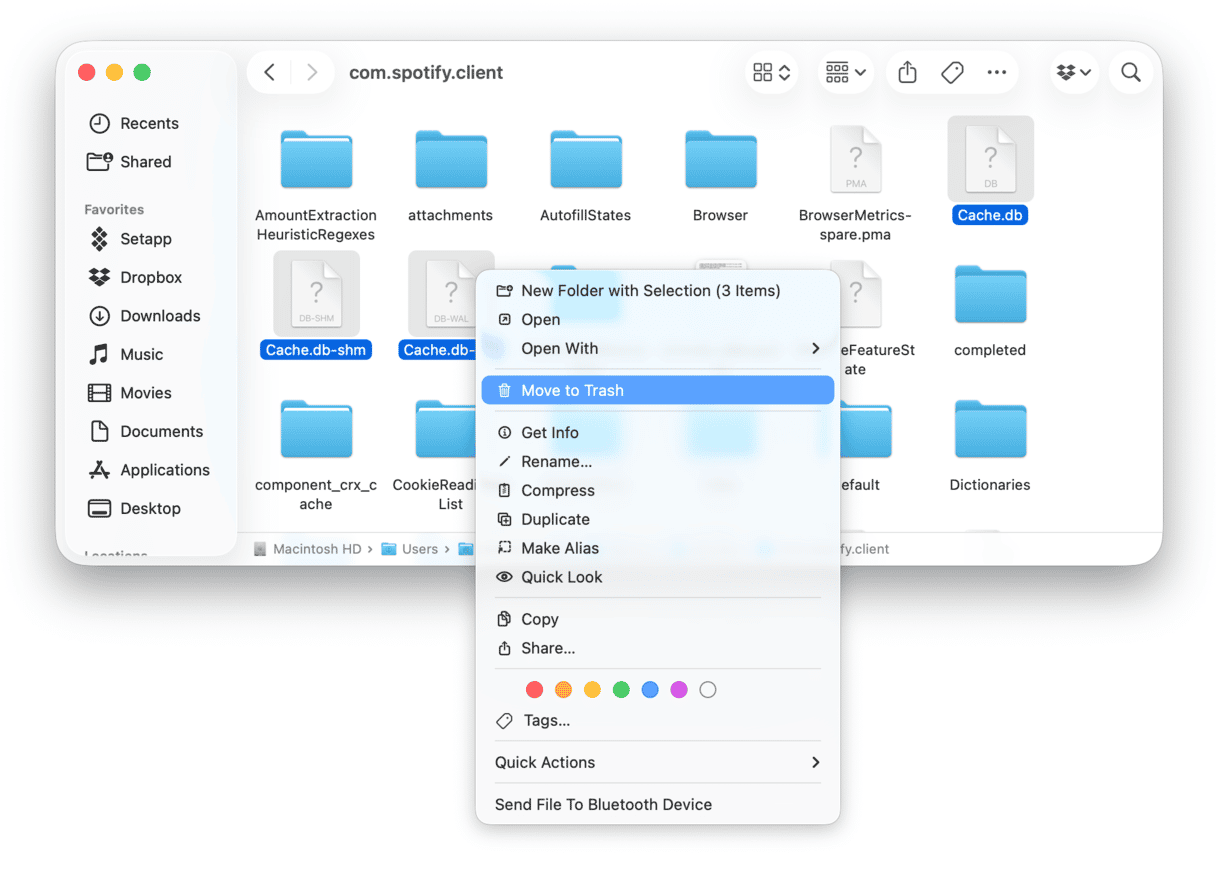 from the Go menu of the Finder like we did before. - There, you'll find different app cache — for example, com.spotify.client stores Spotify cache.