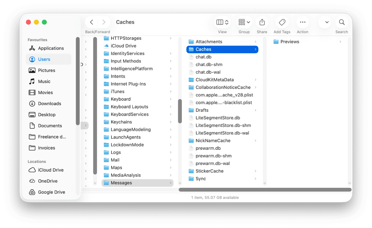 Cache files are buried deep in your Mac’s Library folder or your user Library folder. Many apps store their cache files in ~/Library/Caches. But not Messages. Here’s how to find and delete iMessage cache: