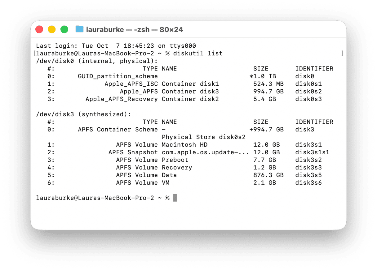 - Open Terminal again, use the command from above to find your connected drives: