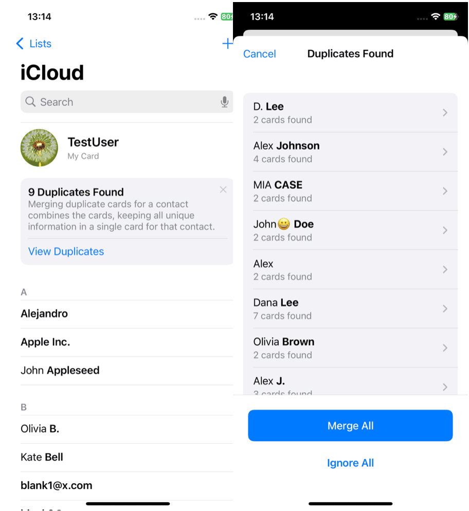 Duplicate contacts are most often created when multiple accounts and imports collide. Fortunately, you’ve got options: use the View Duplicates feature on iPhone for one-tap merges, manually delete duplicate contacts if the banner isn’t available, or link similar entries to clean up your list without permanently removing anything.