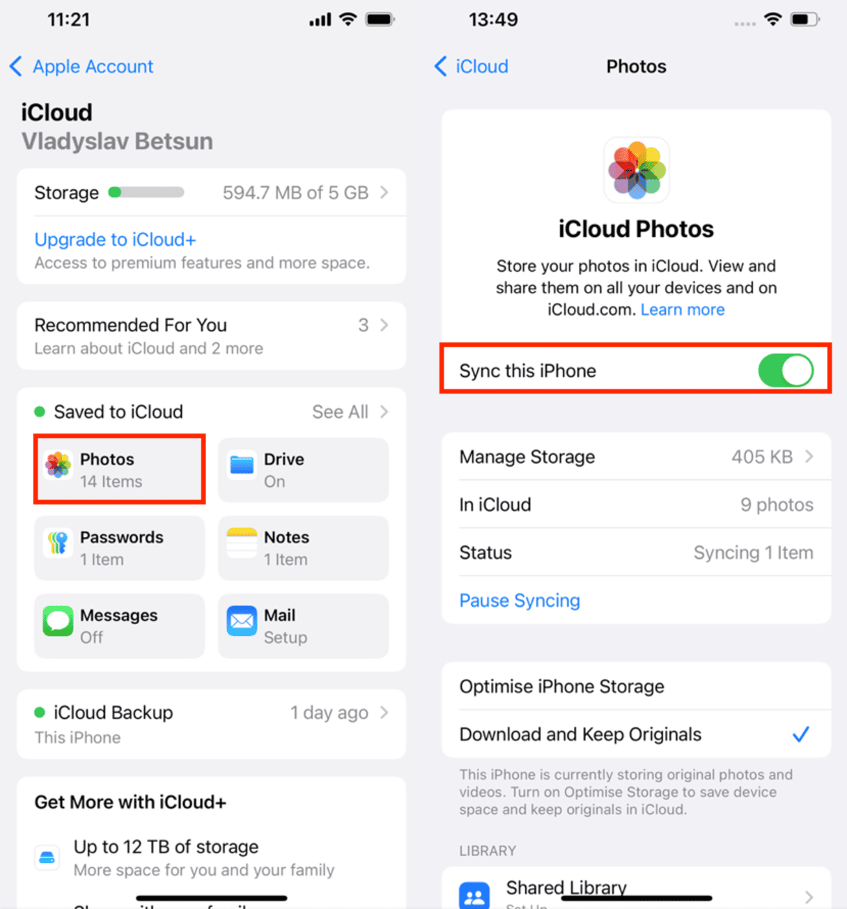 Note: If you opt for Optimize iPhone Storage, it will reduce the resolution of your photos.