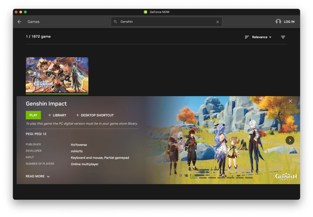 By downloading GeForce now, you can play Genshin Impact on Nvidia’s service. Once you’ve installed it, you can queue to play Genshin Impact for free, though you may have to wait a while until there is space available. If you don’t want to wait, you can pay $9.99/month for six hours of playing time a month or $19.99 for eight hours. The higher fee also gives you access to 4K resolution and 120fps gaming.