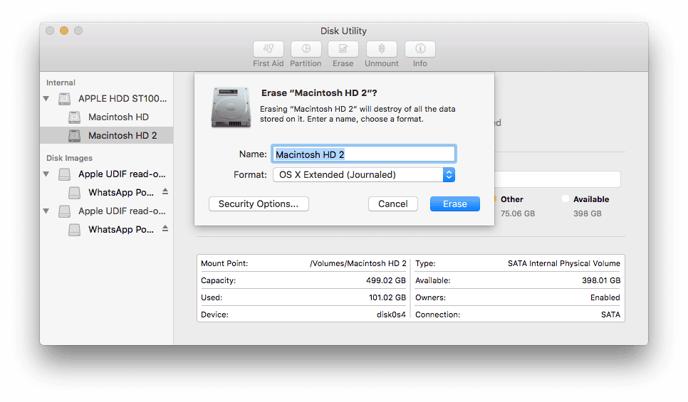 - Click Erase.
