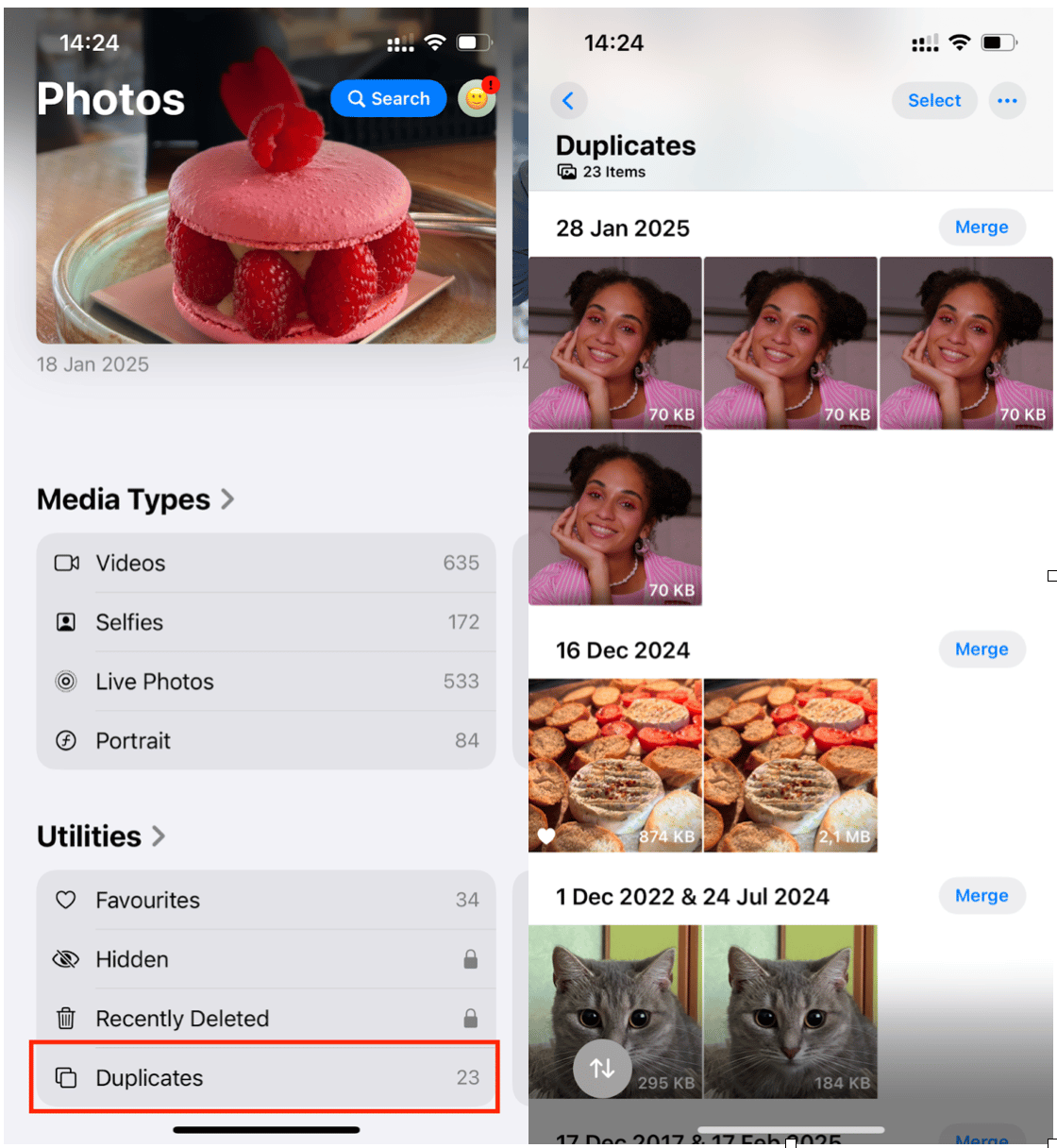 If you have a large photo library and want an even more effective duplicate finder, CleanMy®Phone's Organize Module can help automate this process.