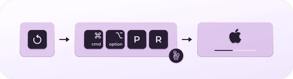 - Press the power button and the Command+Option+P+R keys.