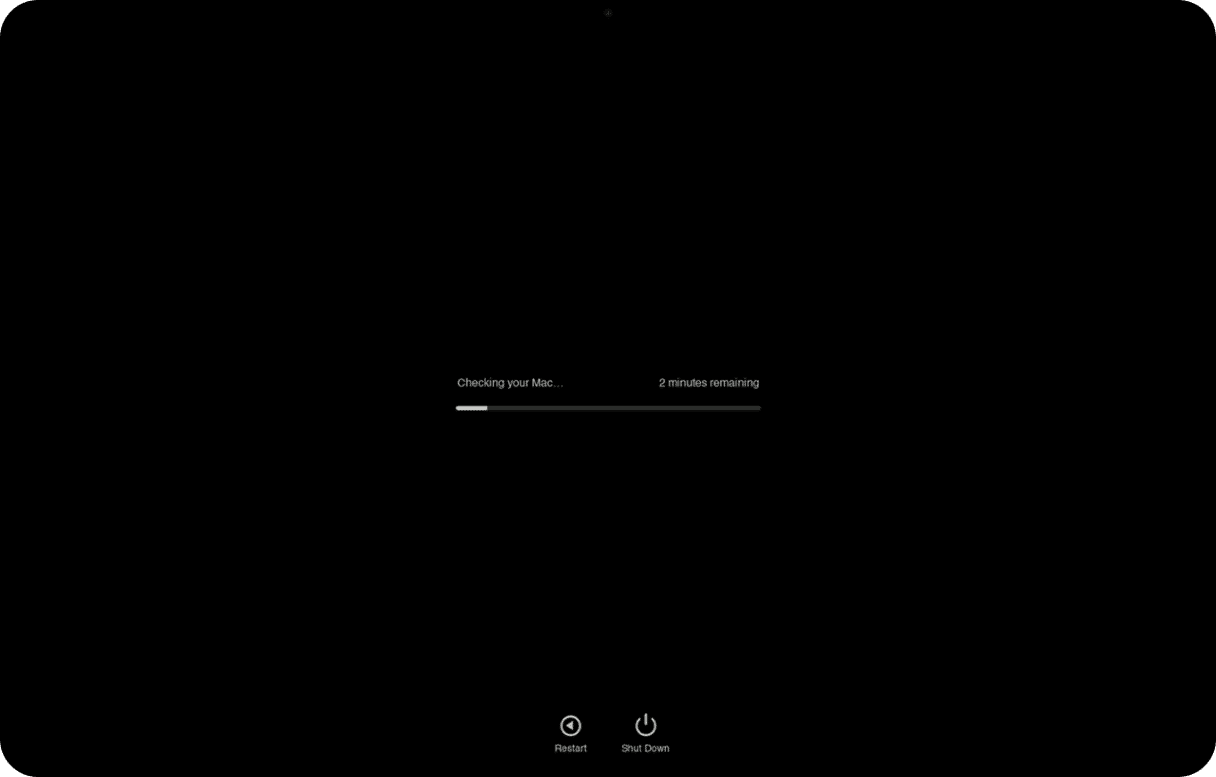 Apple Diagnostics will run automatically. When it is complete, it will present a list of the problems encountered. Check what the reference code you get means here.