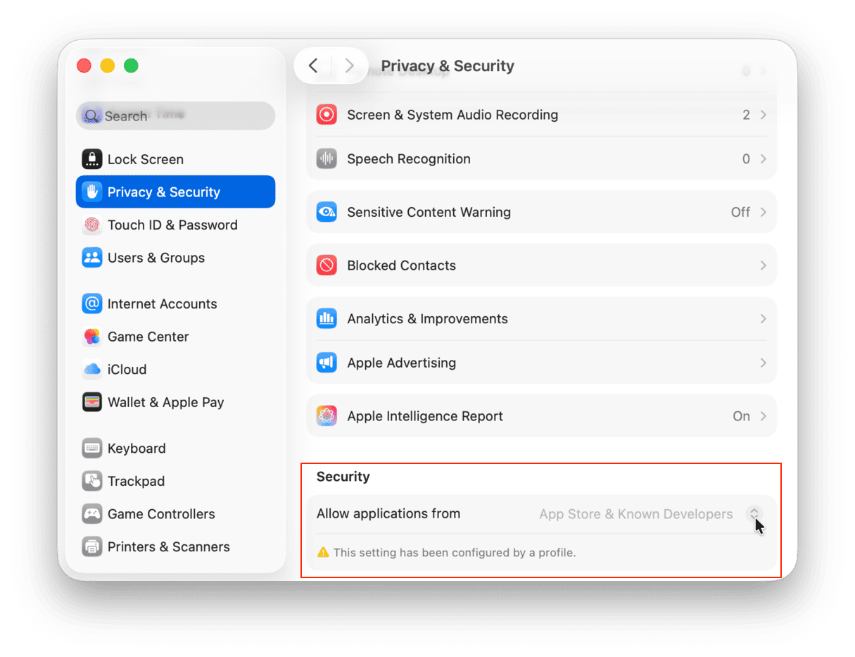 - Disable Gatekeeper: If you want to open a particular app that Gatekeeper won’t let you open, you can disable Gatekeeper temporarily. To do this, go to System Settings > Privacy & Security, and under the Allow apps downloaded from section, select “Anywhere.” If you cannot see the option, select “App Store & Known Developers” (in some macOS versions, it is Identified Developers). Known/Identified developers are software creators who have a digital certificate from Apple verifying that their apps haven’t been tampered with.