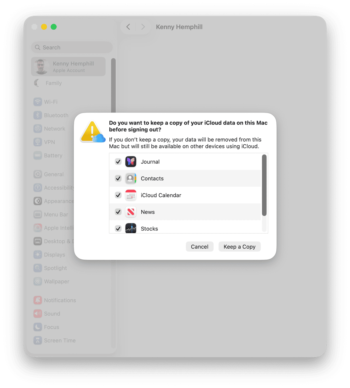 - Choose the data you want to keep a copy of on your Mac and click Keep a Copy.