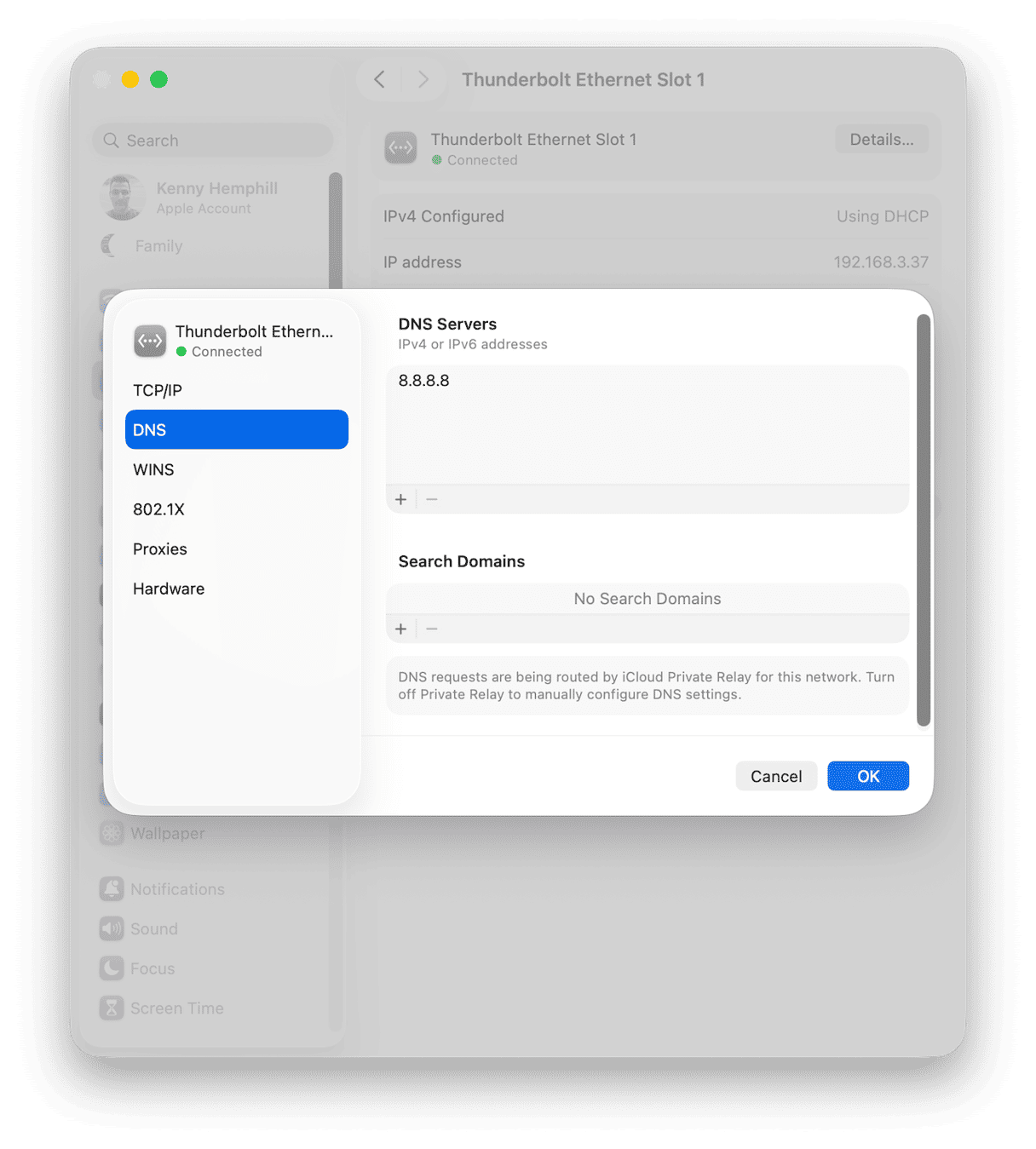 8.8.8.8and click OK. - Quit System Settings and try the website again.