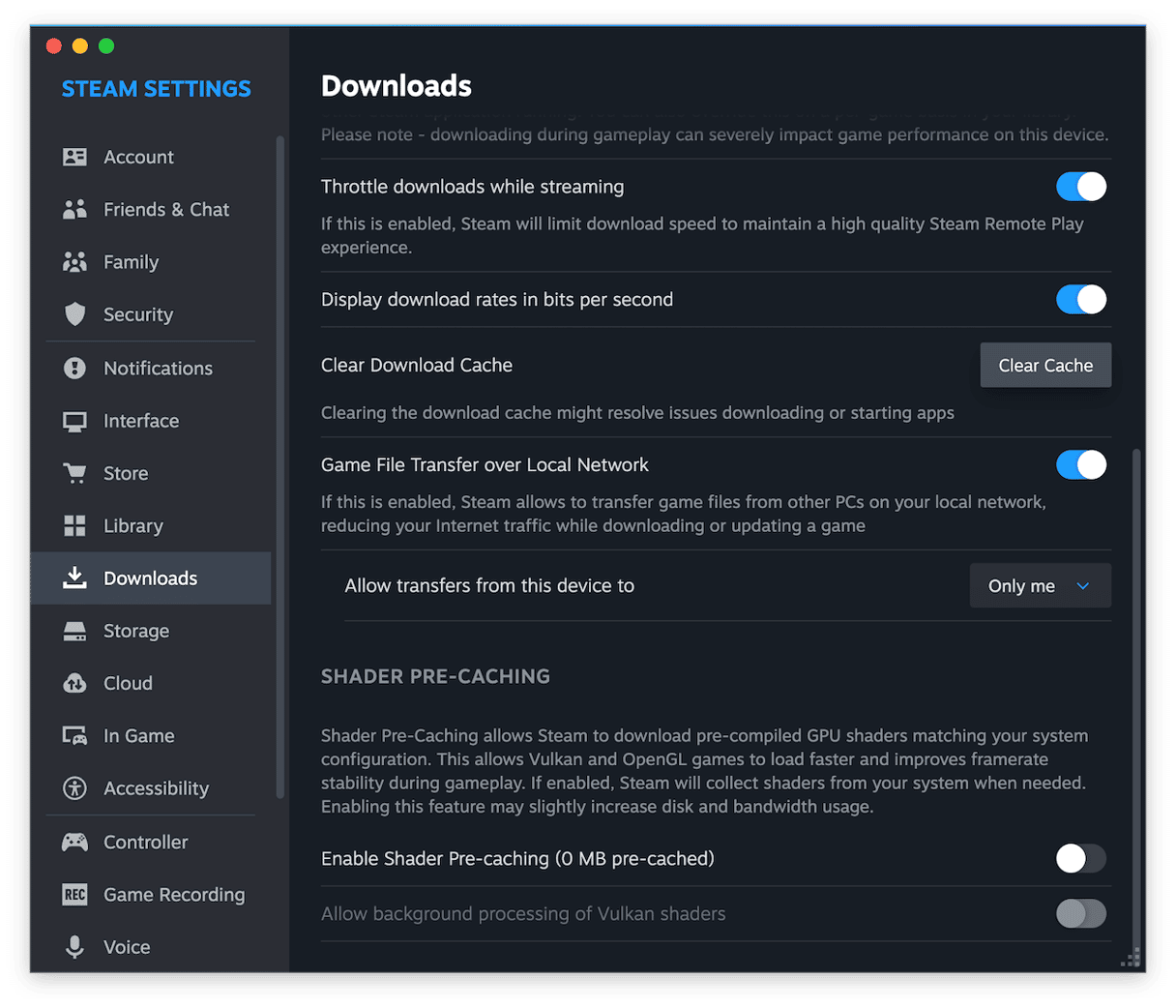 Because I'm using macOS Tahoe, I also found potential issues with VPNs and Apple‑specific features like iCloud Private Relay affecting Steam's upload path. Turning off Private Relay cleared my sync backlog more than once, but more on that in the section below.