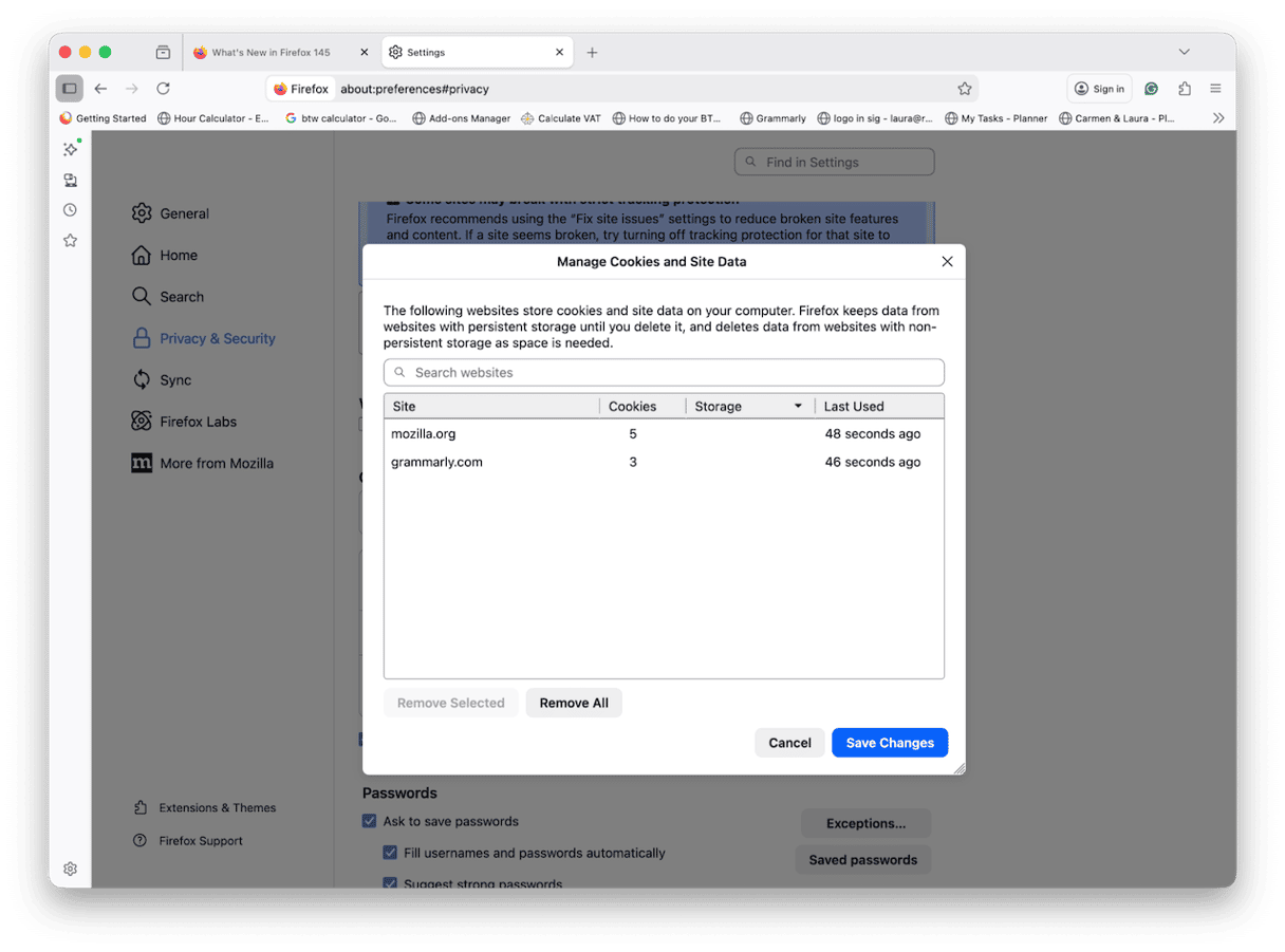 - Open Firefox and from the menu > Preferences > Privacy & Security > Cookies and Site Data > Manage Data.