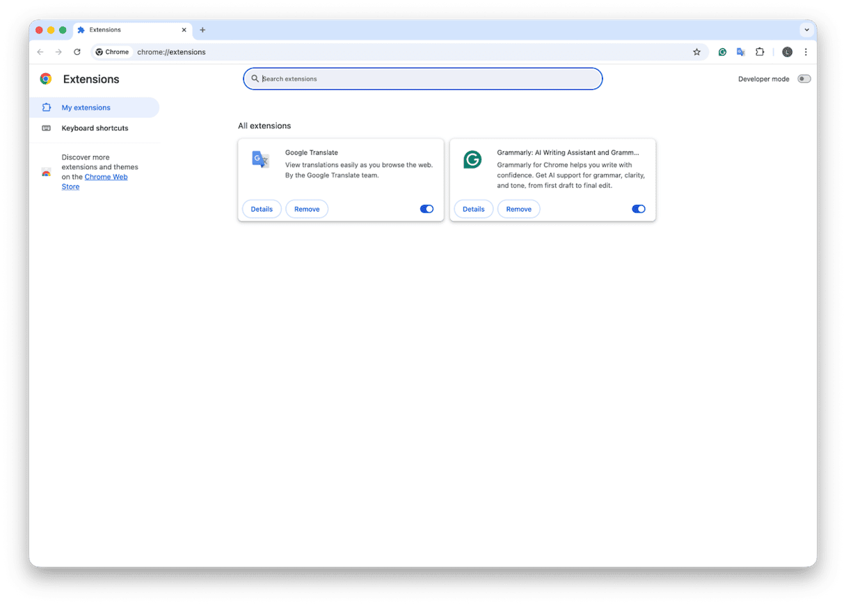- Uncheck, toggle off, or remove anything that you don't recognise, that you don't use, or that has the ability to modify pages.