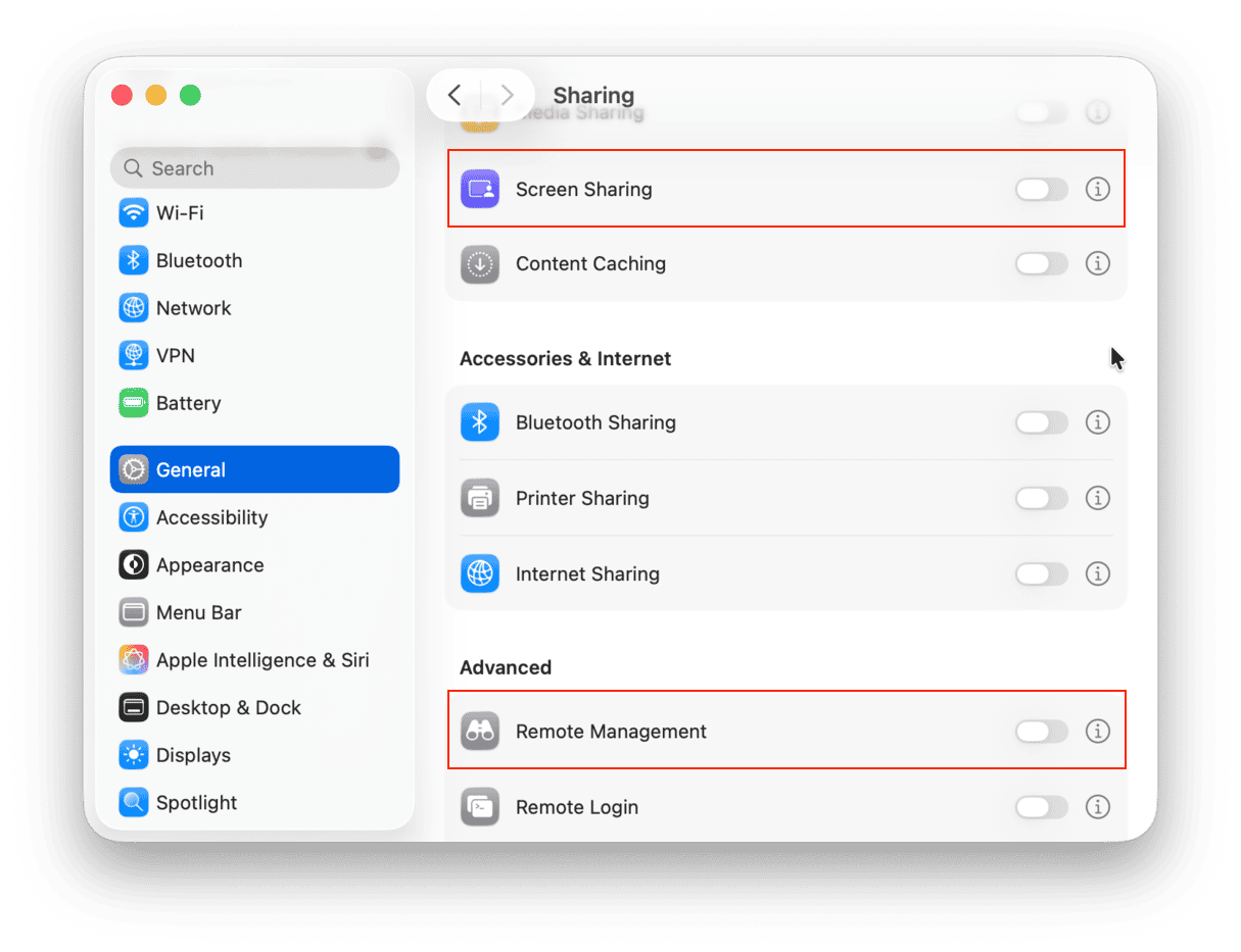 - From the main Apple menu, go to System Settings > General > Sharing.