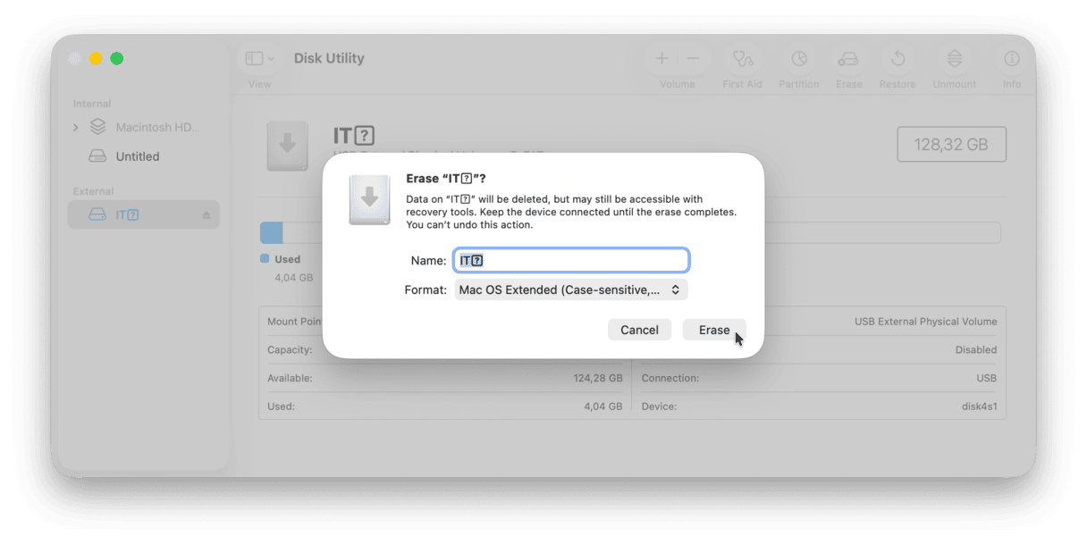 - The drive will be wiped and reformatted, and when it’s done, your Mac will be able to write to it.