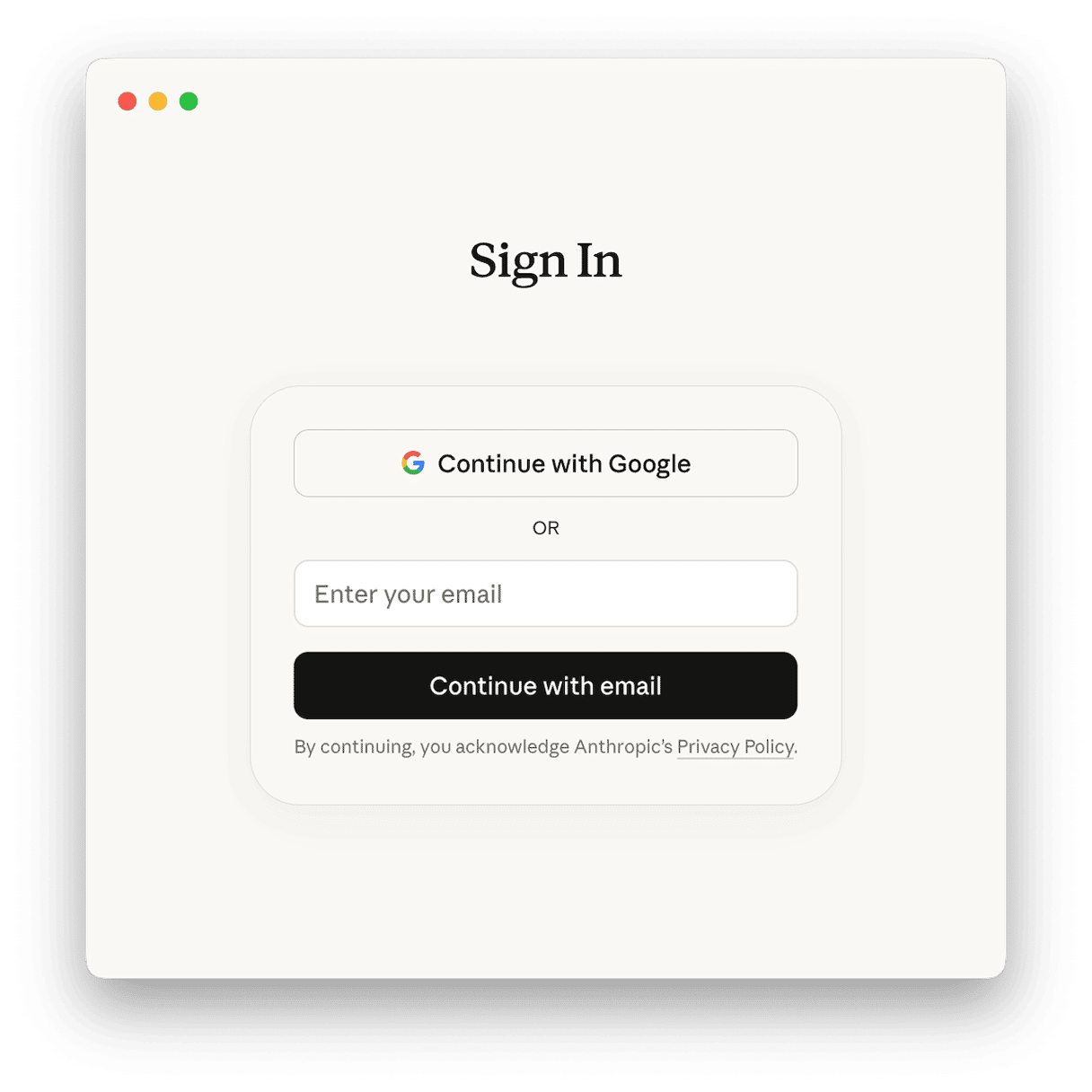 - Then open Claude from your Finder > Applications and sign in with your account.