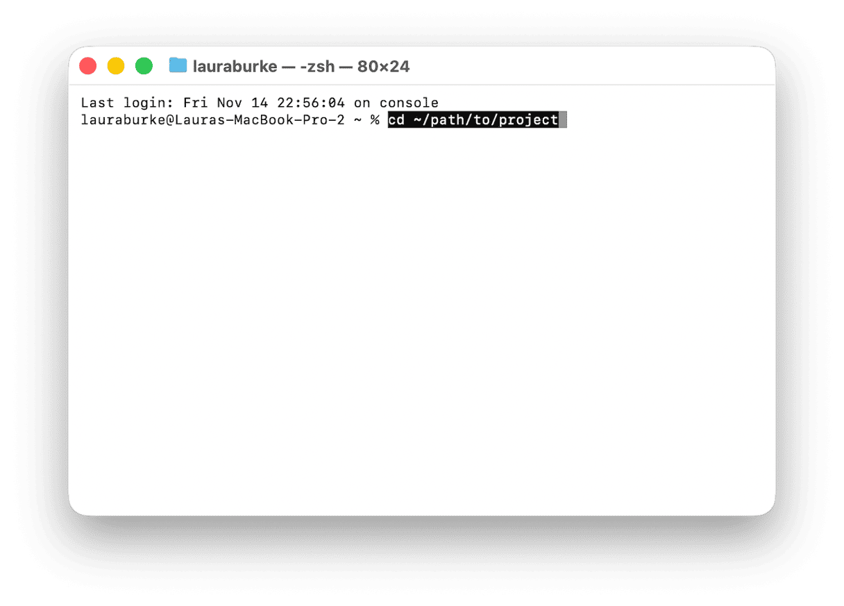 cd ~/path/to/project - Type Claude and sign in if asked.