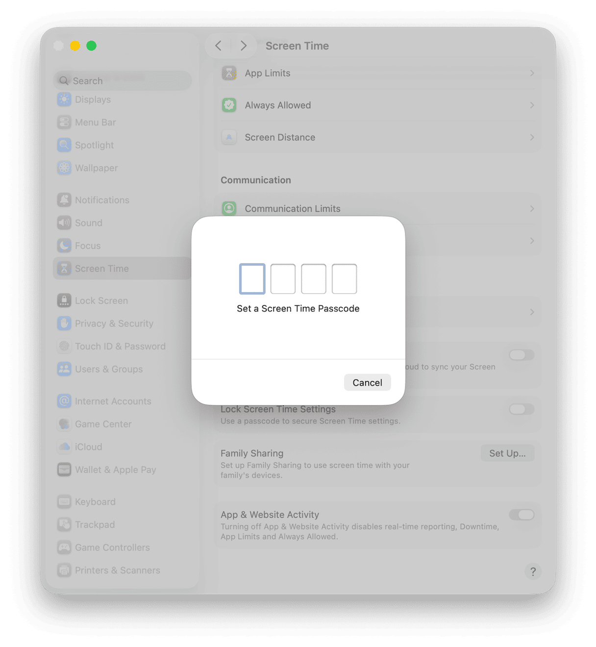 After one minute of use per day, opening Messages prompts for the Screen Time passcode. That is effectively a second password on the app. This is a great option for a shared Mac or if you want an extra step before anyone can open Messages.