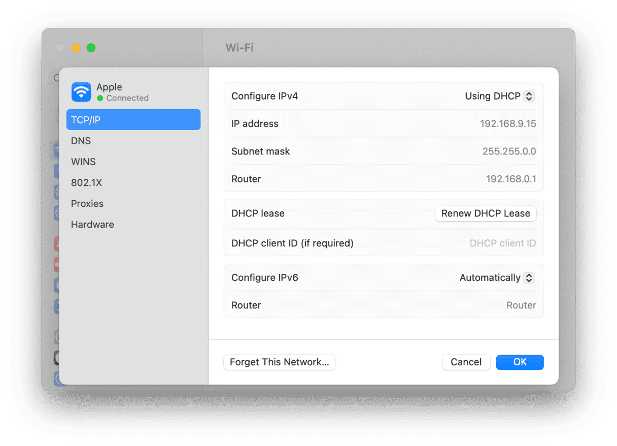 - Next to your Wi-Fi network, click Details and go to TCP/IP.