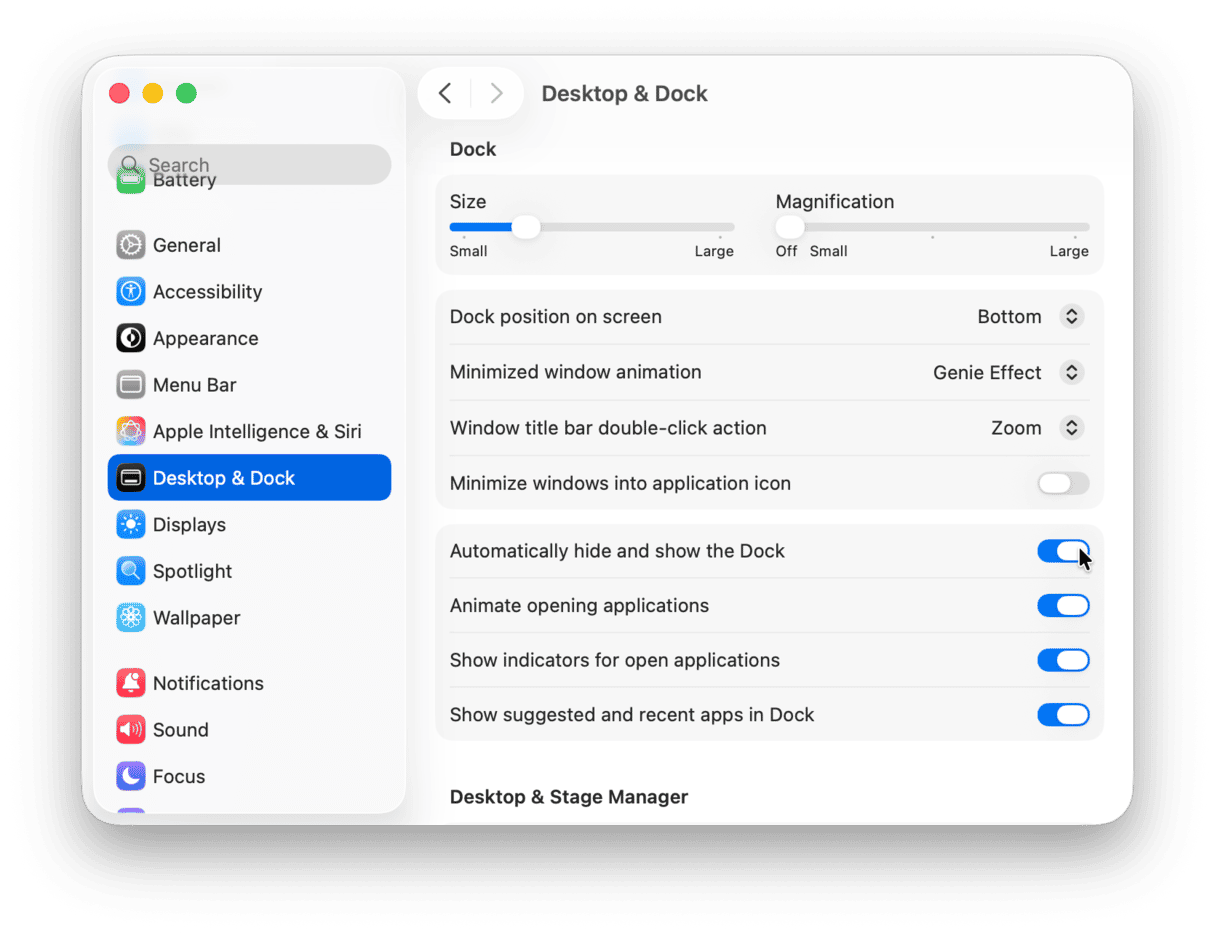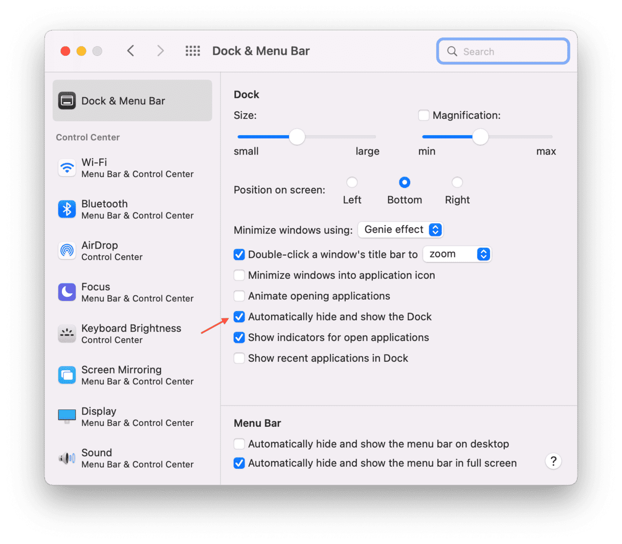 For the ultimate minimalism and clutter-free desktop, you can also check the box next to ‘Automatically hide and show the menu bar.’ This will keep the menu bar hidden until you move the pointer to the top of the screen.