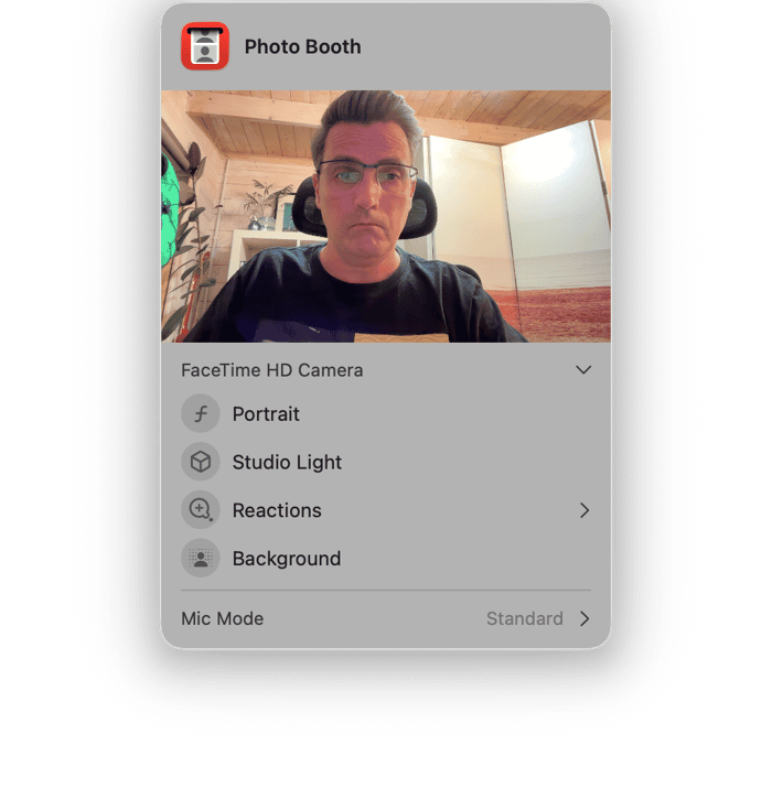 - Click the camera icon in the menu bar and choose the options you want, such as Studio Light or Portrait. Tip: You can remove the background and replace it with a gradient or image by clicking Background and selecting an option.