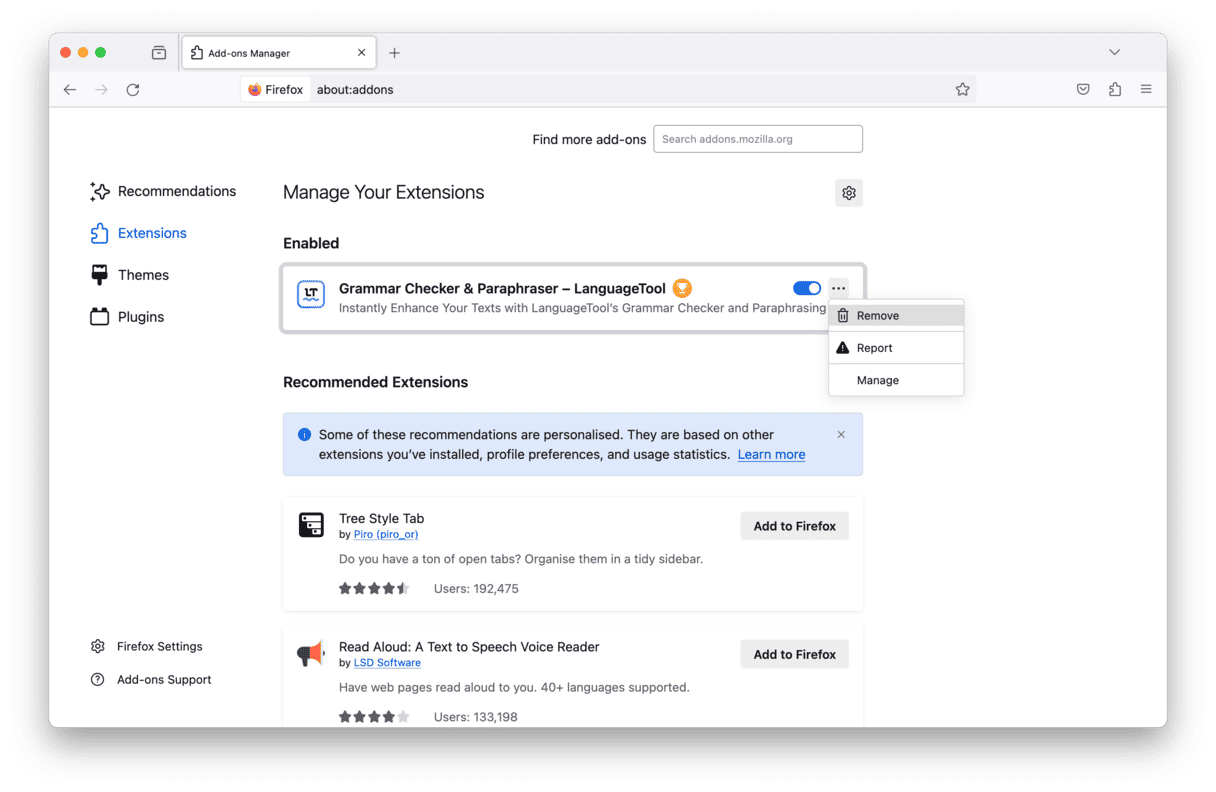 - Finally, select Extensions & Themes and remove anything weird that you don’t remember installing.