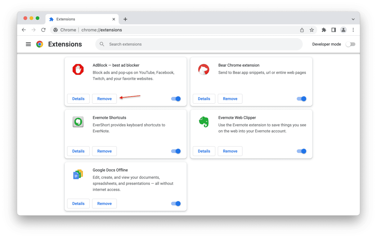 - Look through the installed extensions. If you see any you didn’t intend to download or no longer need, click Remove.