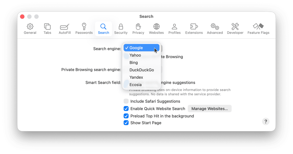 - Paste chrome://settings/search and select your preferred search engine from the drop-down menu.