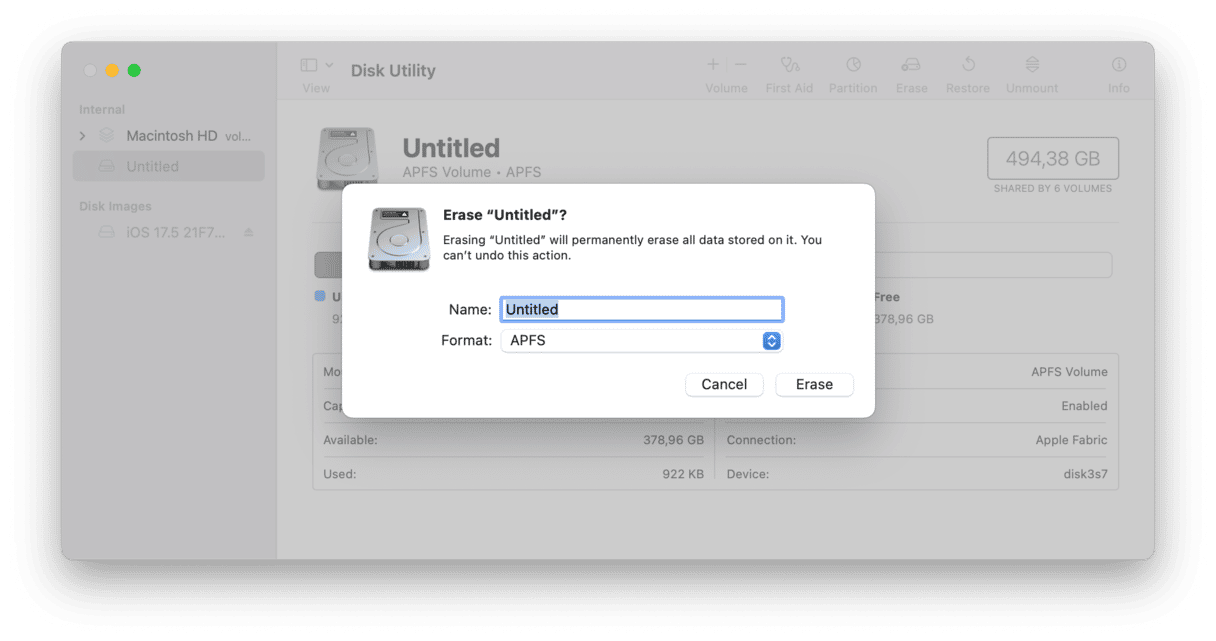 - In macOS Utilities, choose Disk Utility, select your startup disk, and click Erase in the toolbar.