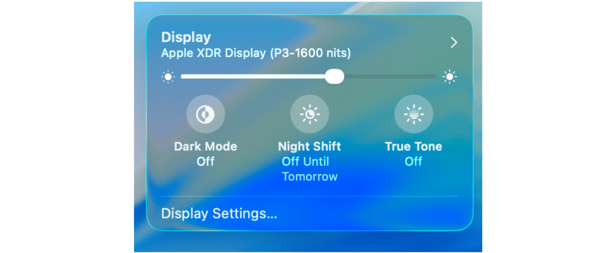 Alternatively, click the Control Center icon in the menu bar > Display and disable True Tone from there. Check if it helped.