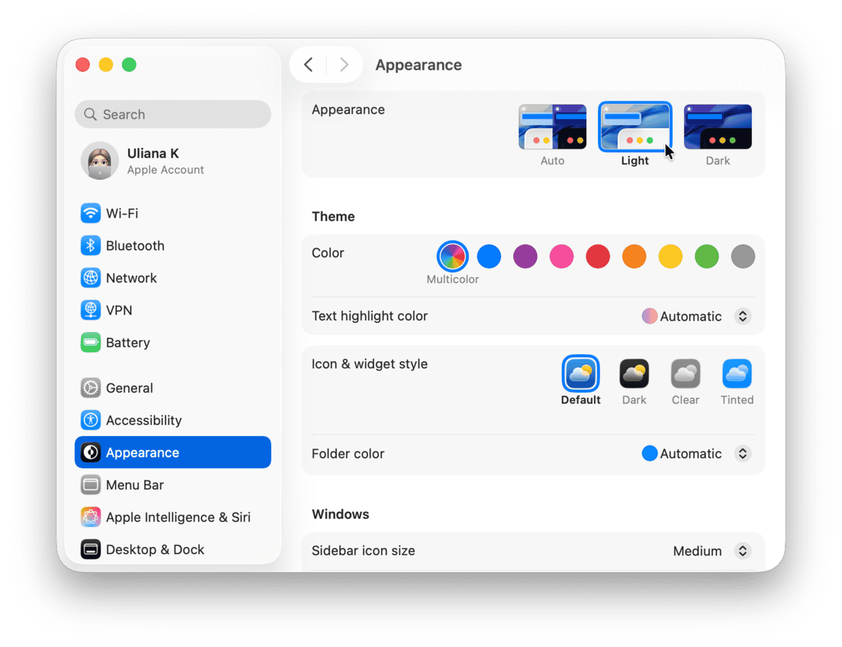 In some cases, True Tone is not the only feature causing MacBook screen flickering. Another feature at fault for the glitch is Dark Mode, so try disabling it. Here's how: