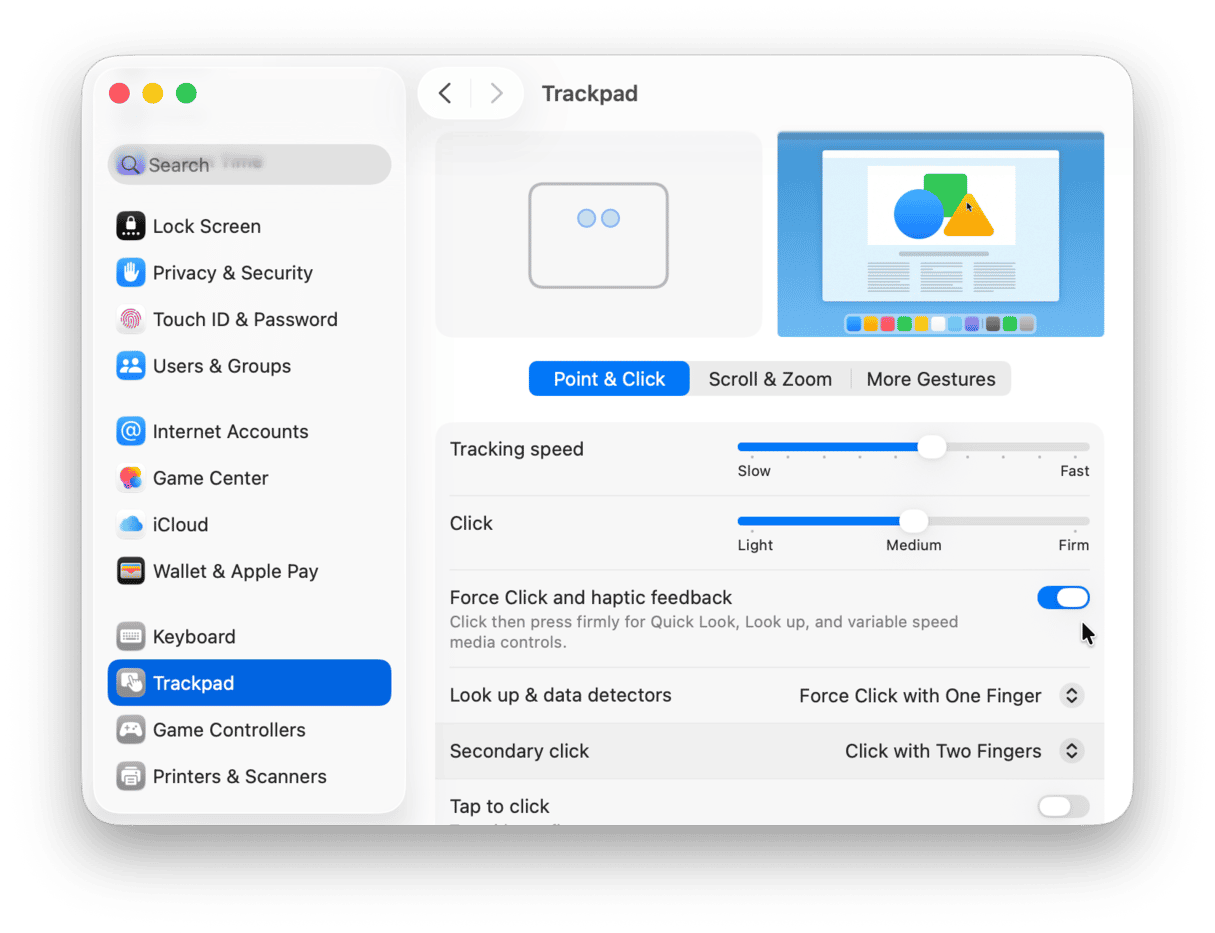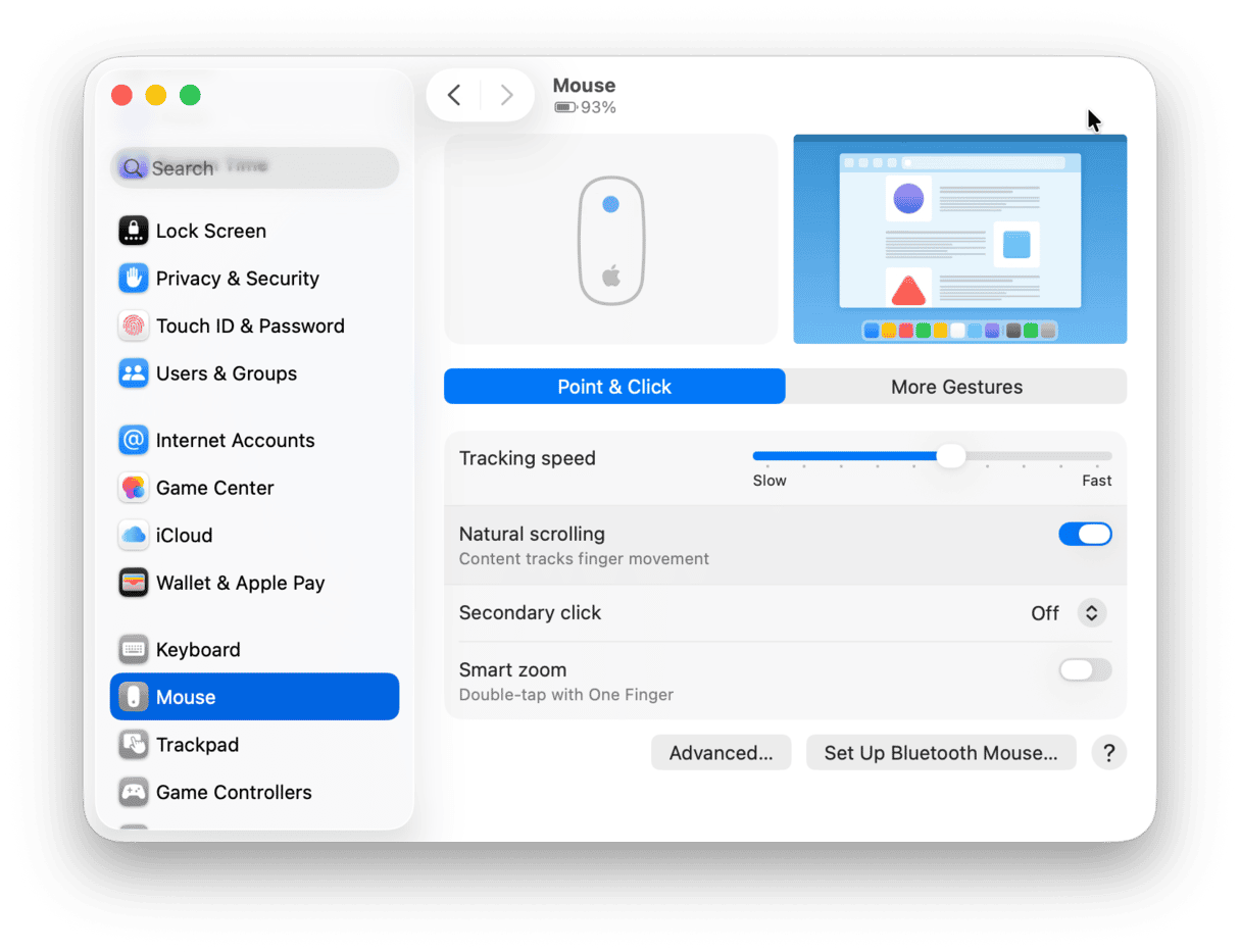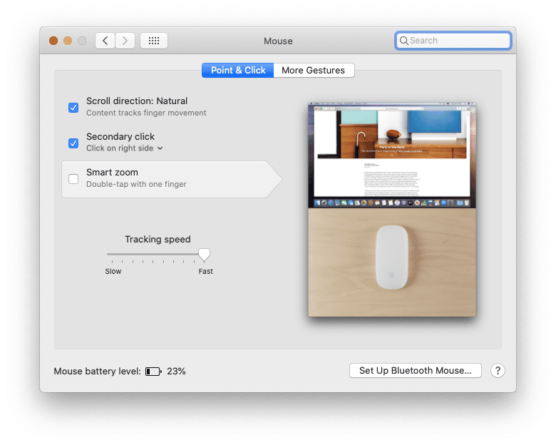 Within the Mouse and Trackpad settings, there are also ways to increase the number of gestures (under More Gestures) you can do with a mouse or trackpad. These extra gestures include using your fingers to swipe or scroll left or right when using a Magic Mouse. You can also add a gesture to tap lightly to call up Mission Control.