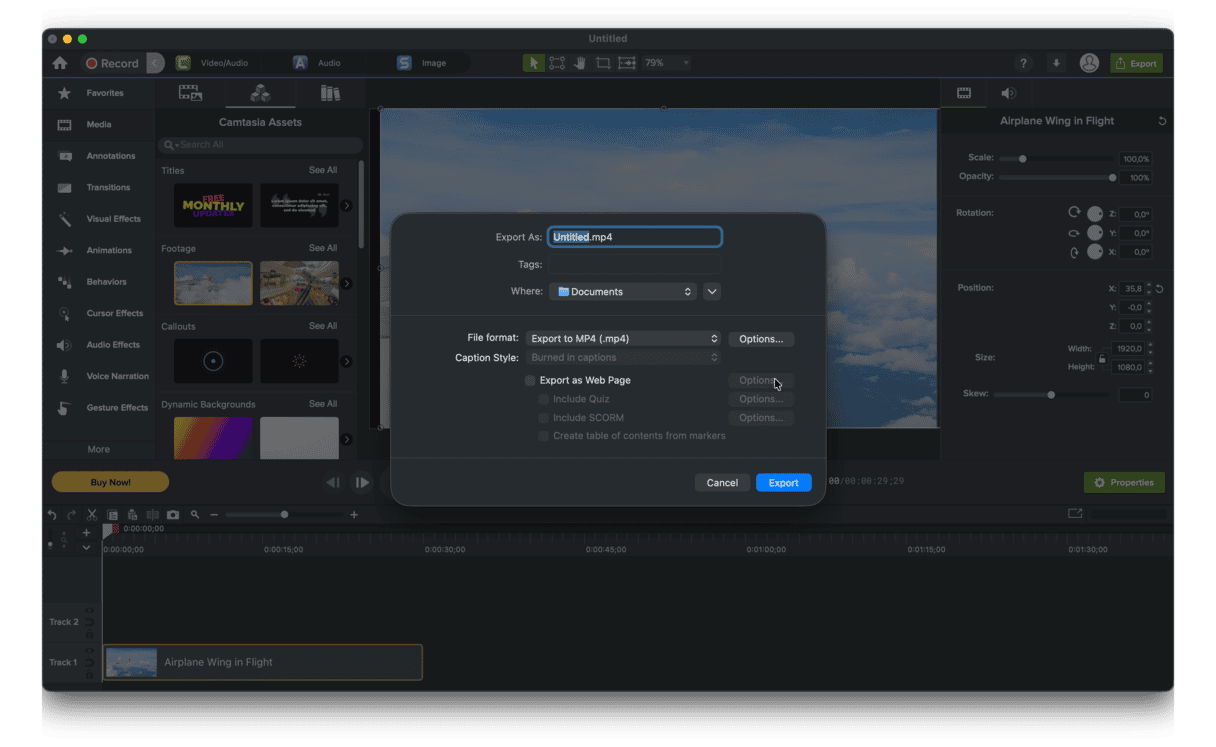 - Open your exported file in a new Camtasia project.