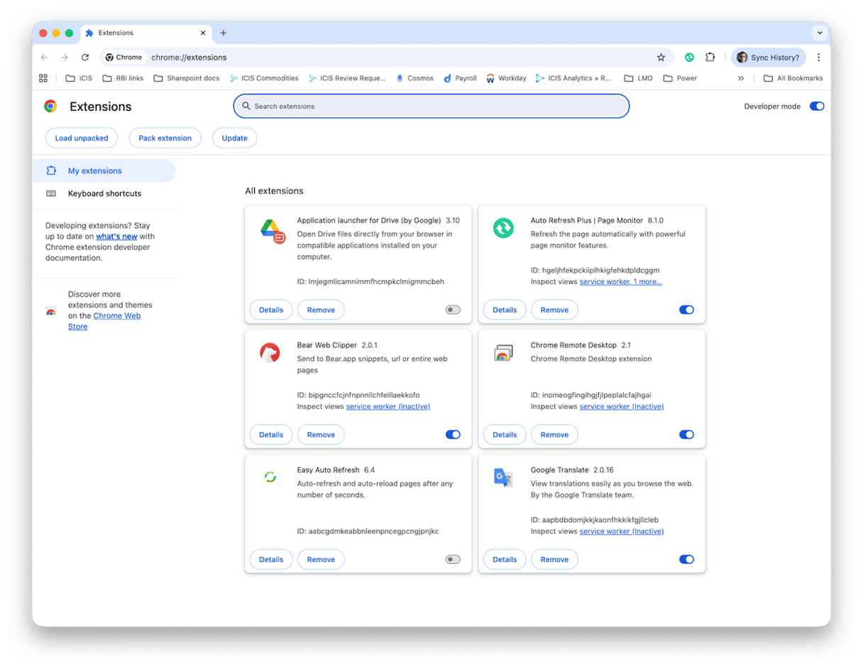 - Click the Chrome menu, choose Settings, and then select Extensions at the bottom of the sidebar.
