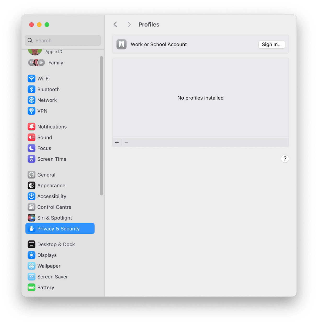 The worst thing that could happen in that scenario is that if you have made changes to update settings, you will have to make them again. But that only takes a few minutes, assuming you have administrator access. If you don’t have admin access, perhaps because your Mac does have an MDM profile installed and that manages updates, you should contact IT support at the organization that installed the MDM profile. You can check if a profile is installed by going to System Settings and choosing Privacy & Security > Profiles.