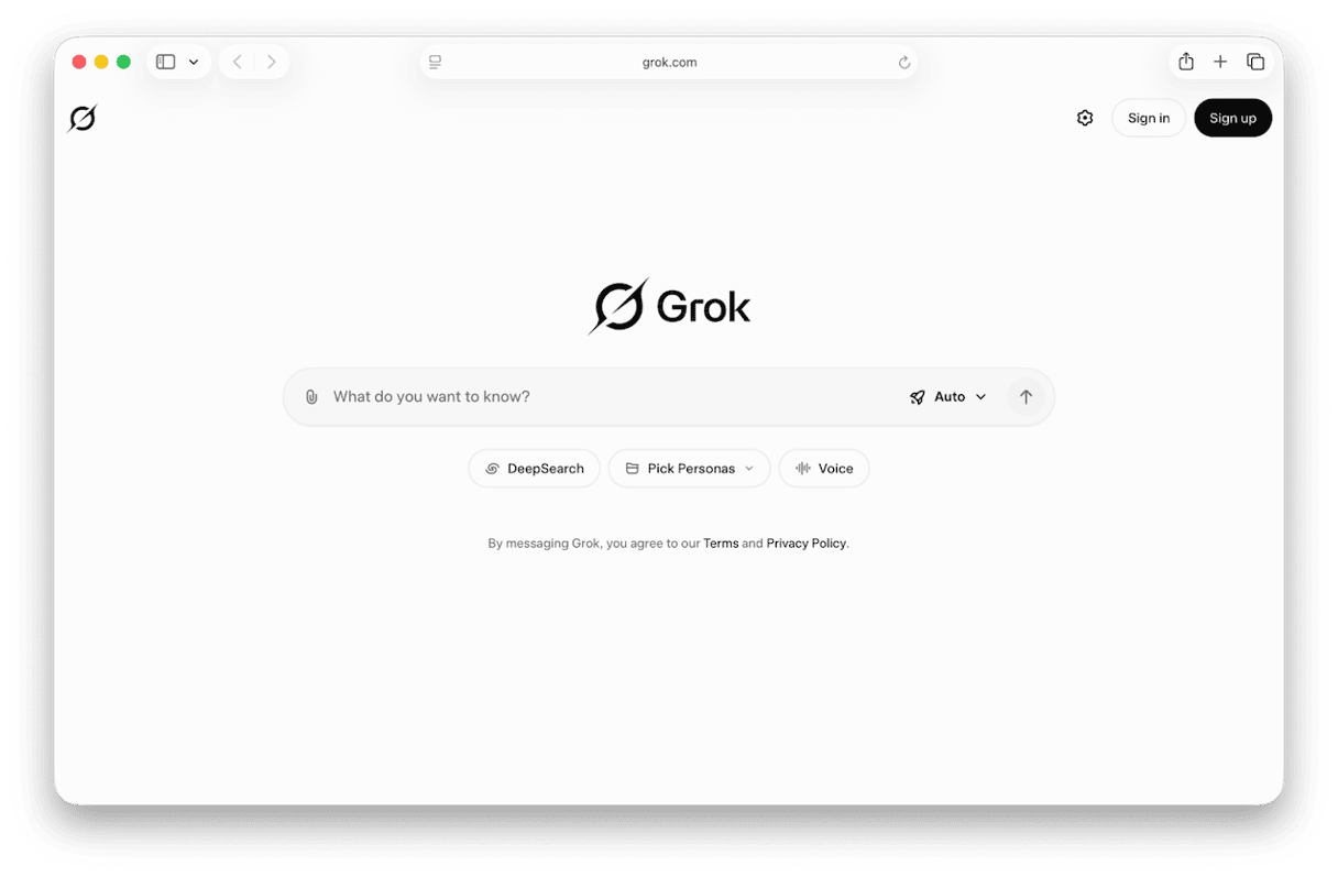 - You can visit grok.com in any web browser and create an account using your Apple Account or email address or sign in with your xAI account details.